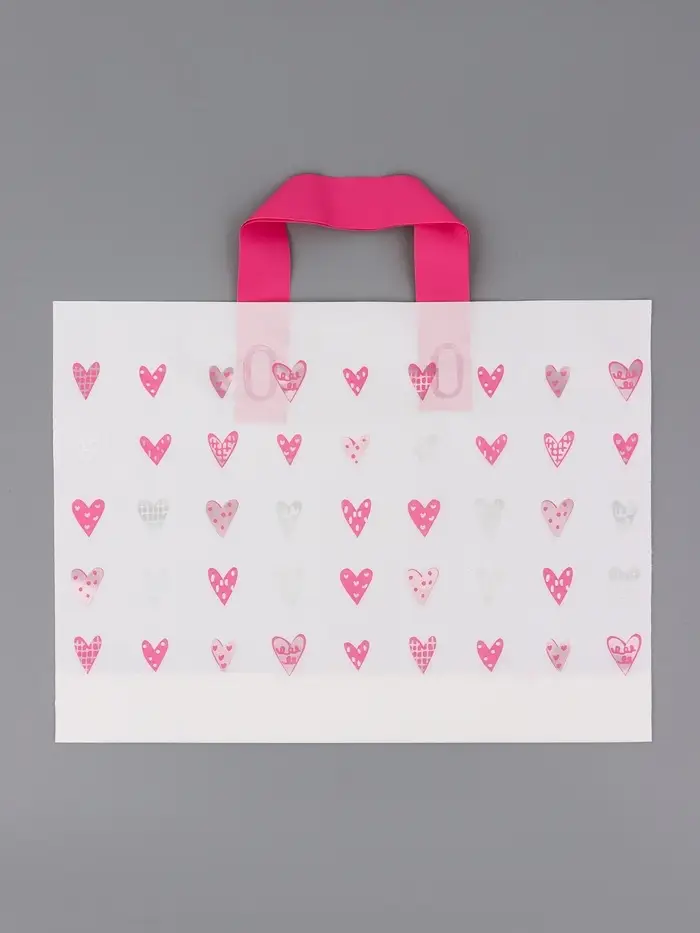 Пакет с петлевой ручкой "Сердечки" 35 х 25 х 8 см 80 мкм