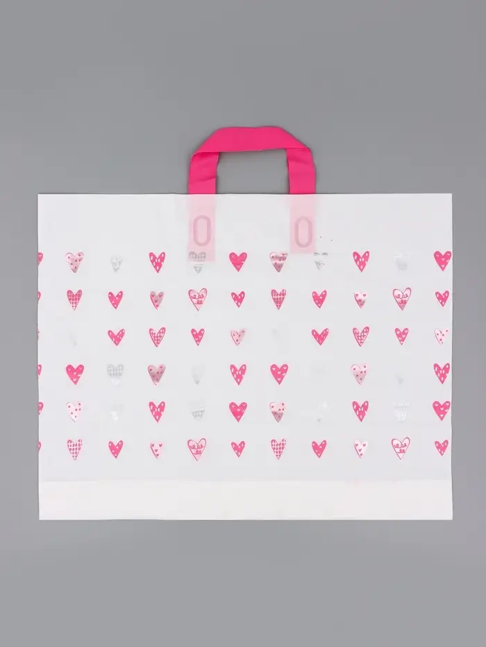 Пакет с петлевой ручкой "Сердечки" 45 х 35 х 8 см 80 мкм