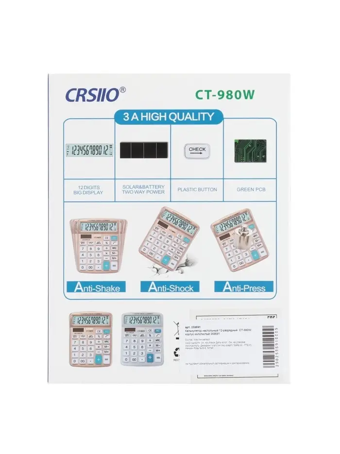 Надёжный помощник для работы с цифрами! Настольный калькулятор CT-980W — это 12-разрядное вычислительное устройство в золотистом корпусе. Калькулятор подходит для ежедневного использования в офисе, дома или на учебном месте.