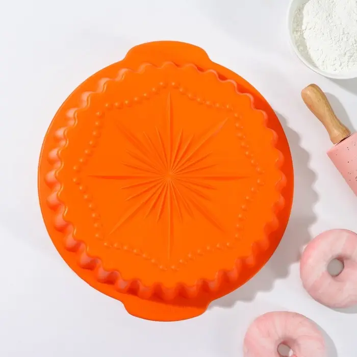 Форма для выпечки Доляна «Рифлёный круг. Звезда», силикон, 29×28 см, с ручками, цвет МИКС