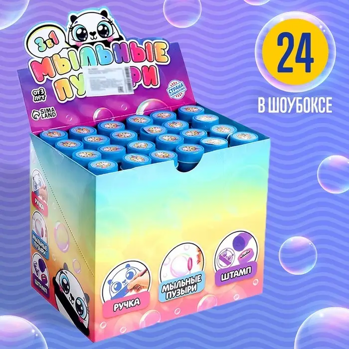 Изделие выполнено в виде яркой ручки с печатью, поэтому малыш сможет писать ей в школе, использовать в творчестве и выдувать мыльные пузыри на переменах.