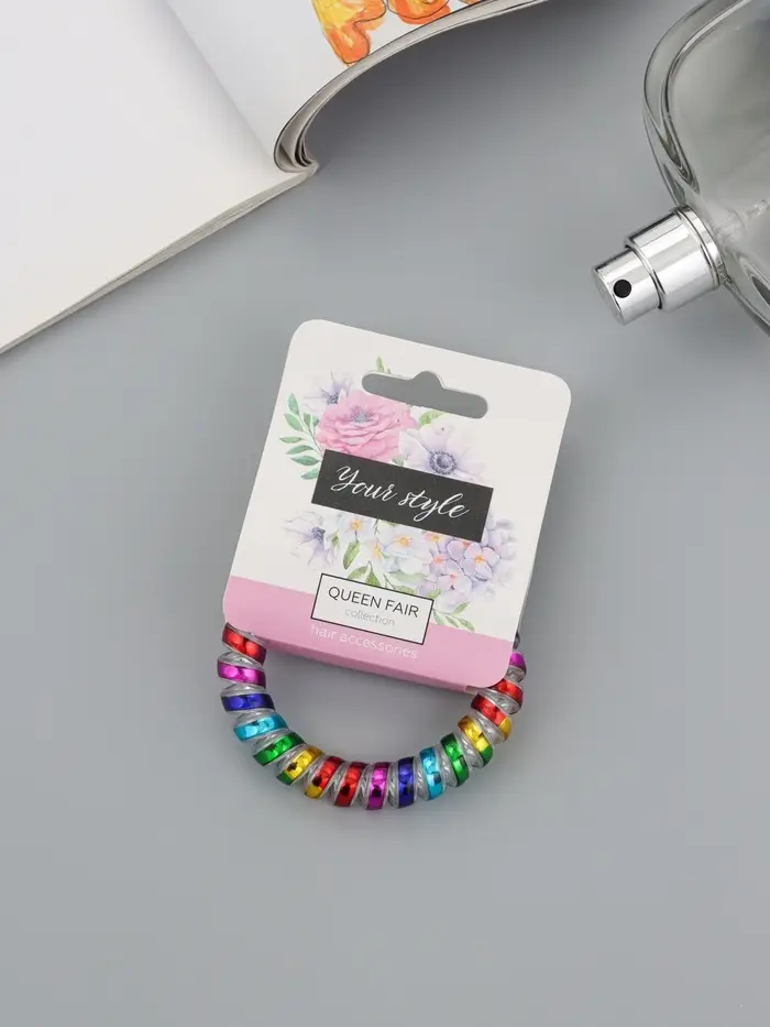 Резинка для волос QF «Пружинка», яркая радуга, 5 см