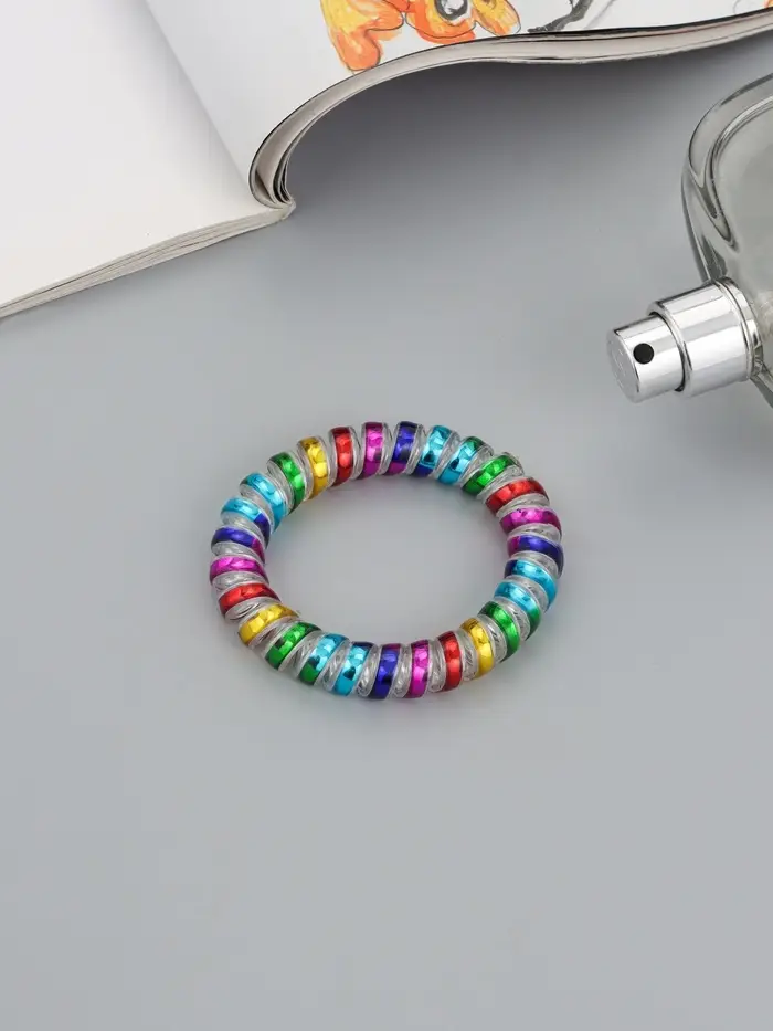 - Яркий дизайн на каждый день: Сочетание насыщенных радужных цветов делает аксессуар заметной деталью. Одна резинка добавляет образу игривости и отлично сочетается с повседневной и спортивной одеждой.