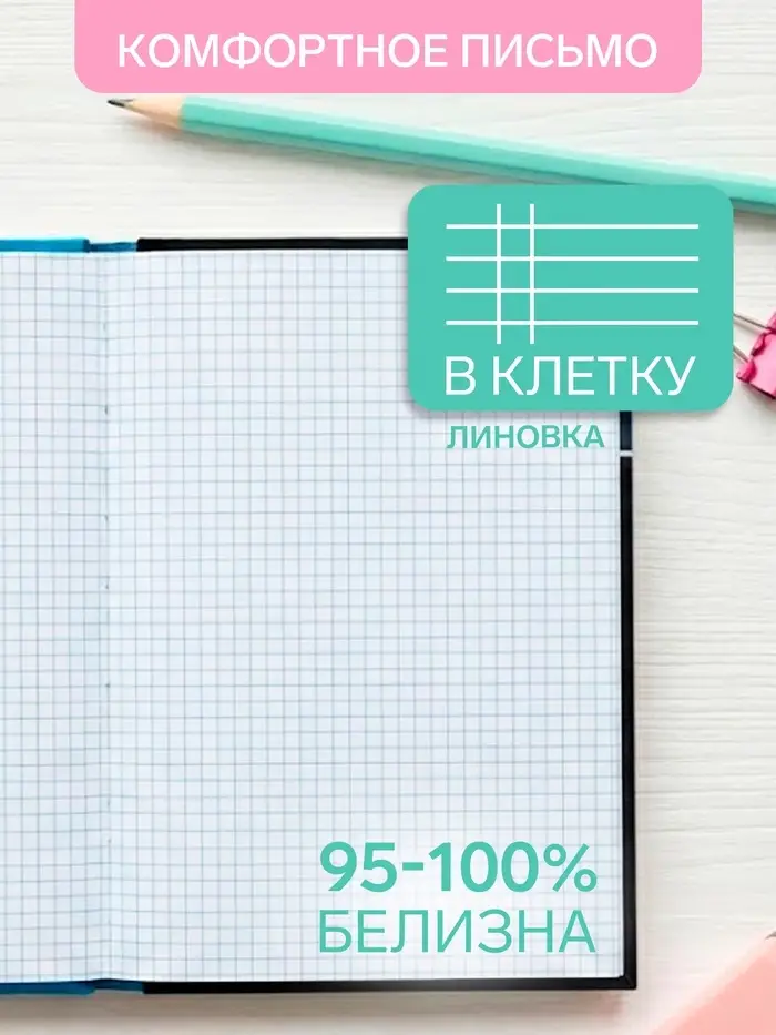 - Высокая белизна страниц 95-100% снижает нагрузку на глаза при чтении и письме.