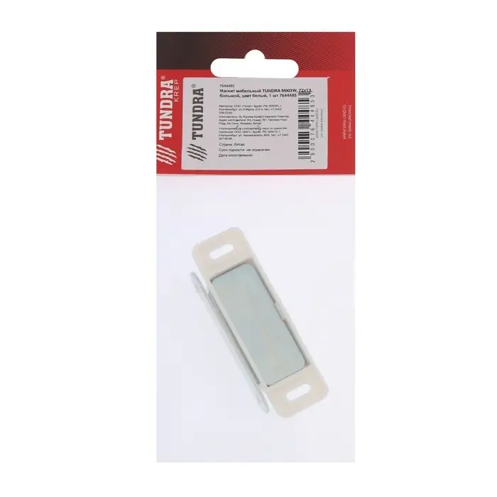 Магнит мебельный ТУНДРА M003W, 72×13 мм, большой, белый, 1 шт.