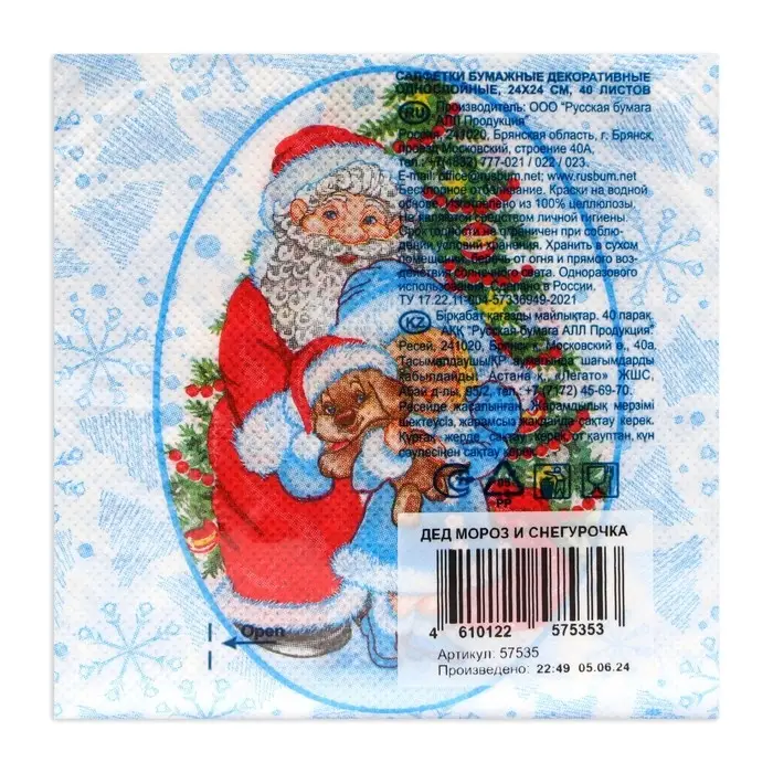 Салфетки новогодние бумажные Desna Design «Дед Мороз и Снегурочка», 1 слой, 24x24 см, 40 шт