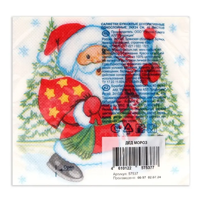 Салфетки новогодние бумажные Desna Design «Дед Мороз» , 1 слой, 24x24 см, 40 шт