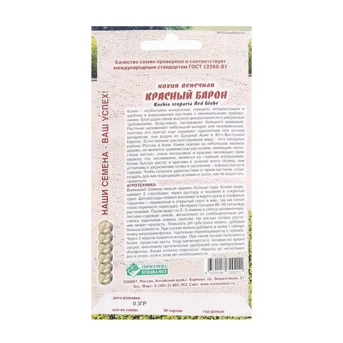 Семена Цветов Кохия венечная Красный Барон, 0,3 г