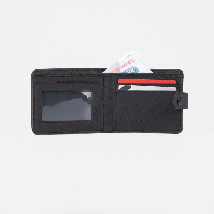 Портмоне мужское на кнопке, отдел для купюр, для карт, цвет чёрный