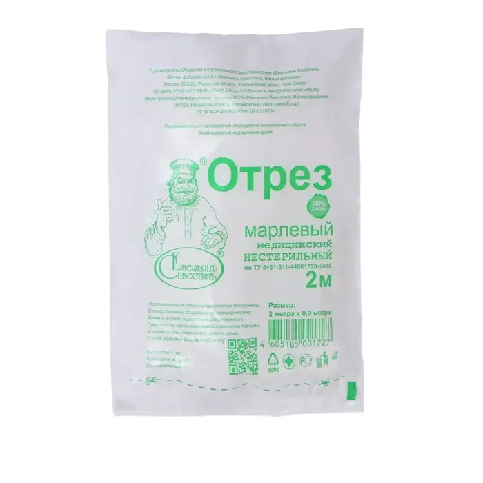 Отрез марлевый это медицинское средство, которое предназначено для профилактики инфицирования и лечения ран. А ещё оно: защищает ссадины от воздействия факторов внешней среды; оказывает лечебное действие на раневой процесс; фиксирует поражённые части тела. Позаботьтесь о средствах первой помощи в вашей аптечке заранее.