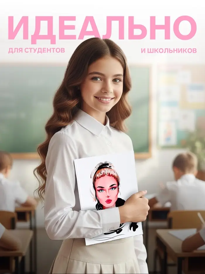 Тетрадь объединяет практичность для занятий и пространство для личных мыслей. Прошитые страницы не выпадают, а жёсткая обложка даёт возможность писать без стола. Здесь учебные заметки соседствуют с творческими находками, создавая атмосферу вдохновения для школьниц и студенток.