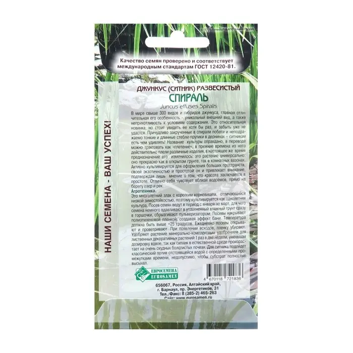 Семена цветов Джункус развесистый "Спираль", 5 шт