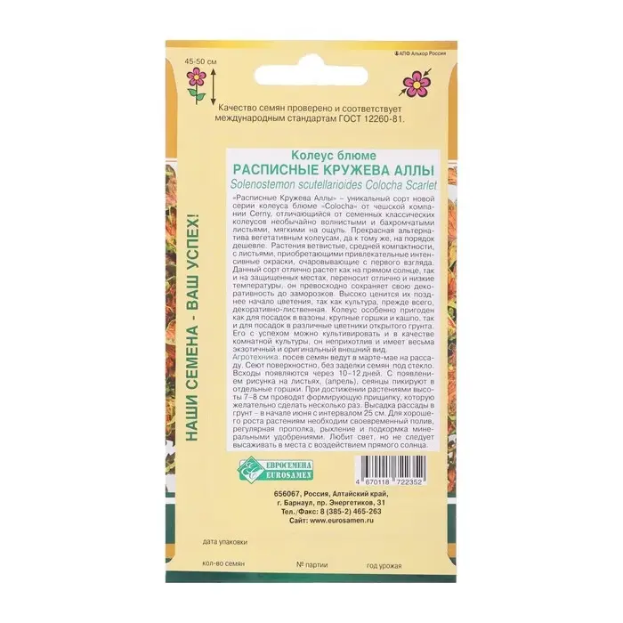 Семена Колеус блюме "Кружева Аллы", 10 шт