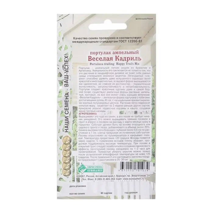 Семена цветов Портулак ампельный "Веселая Кадриль" 5 шт