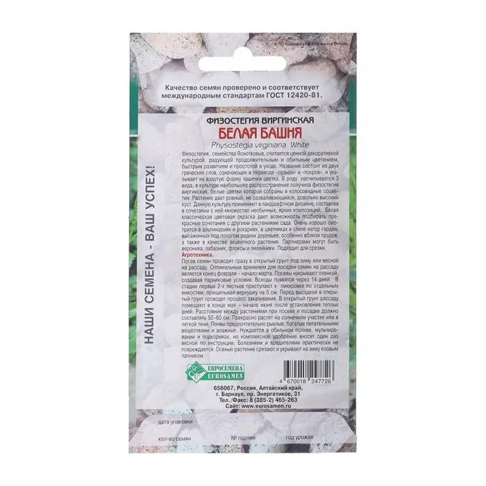 Семена Физостегия виргинская "Белая Башня", 0 ,1 г