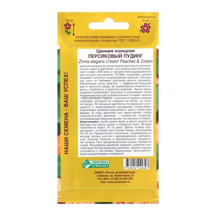 Семена Цинния изящная "Персиковый пудинг", 0 ,2 г