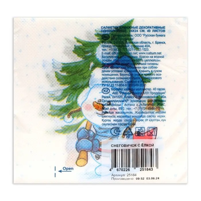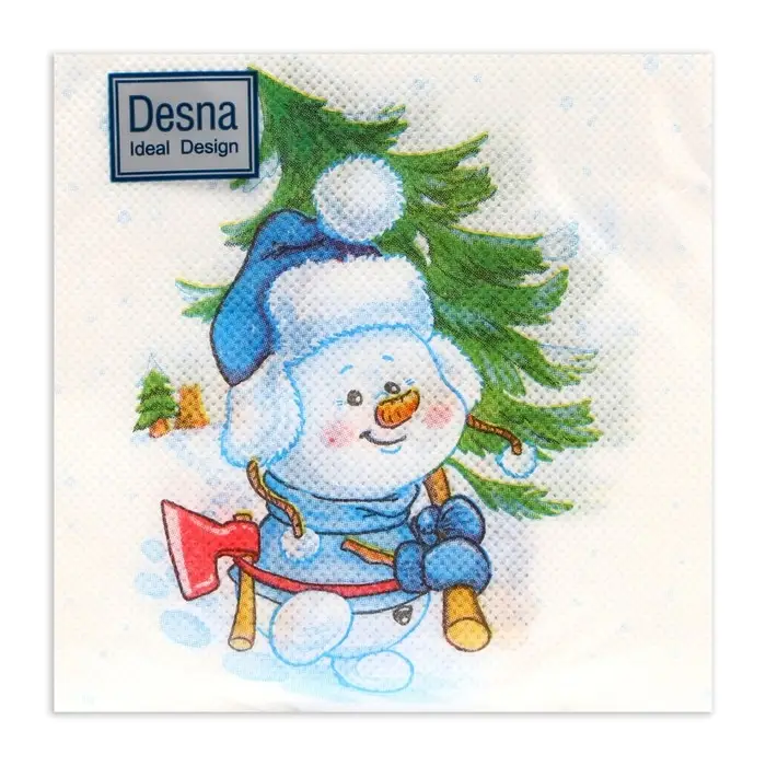 Салфетки новогодние бумажные Desna Design «Снеговичок с елкой», 1 слой, 24х24 см, 40 шт.