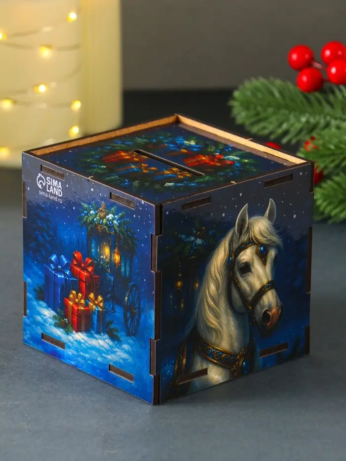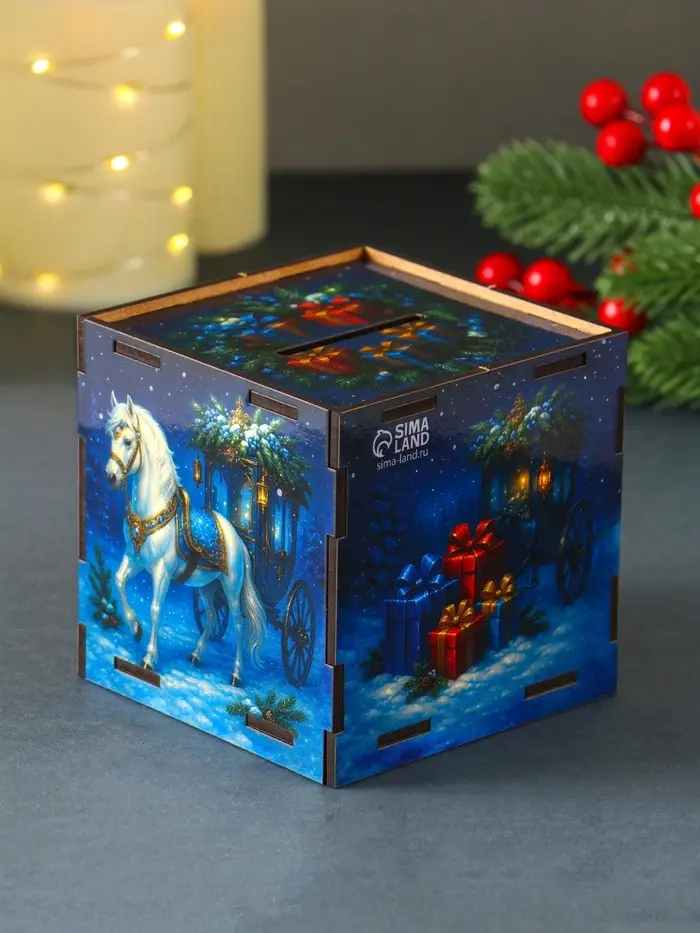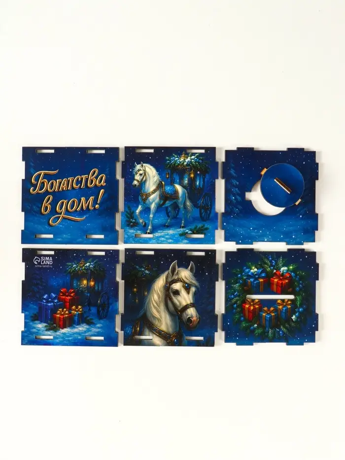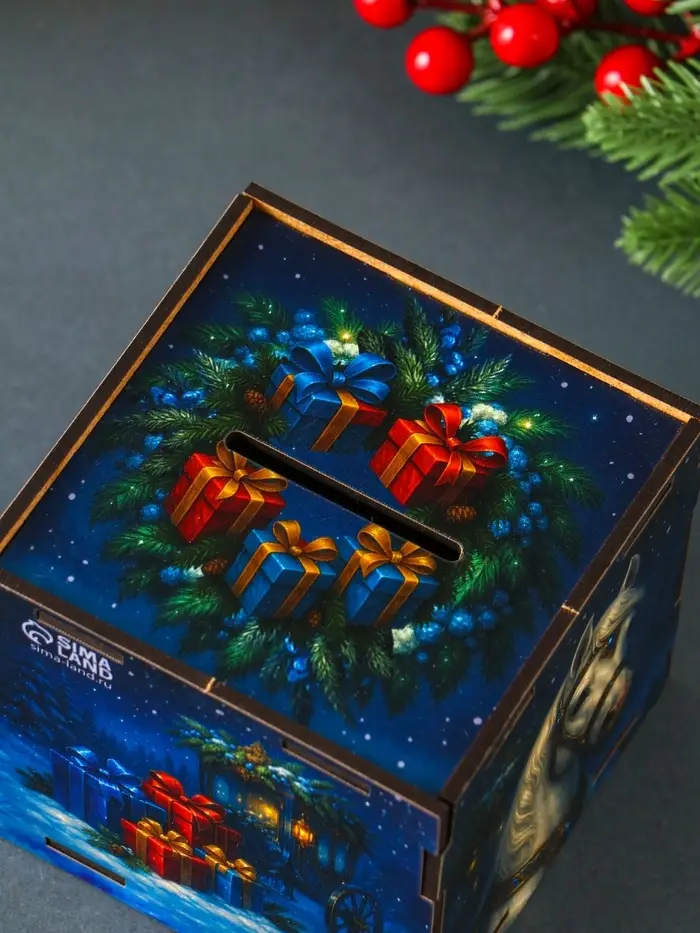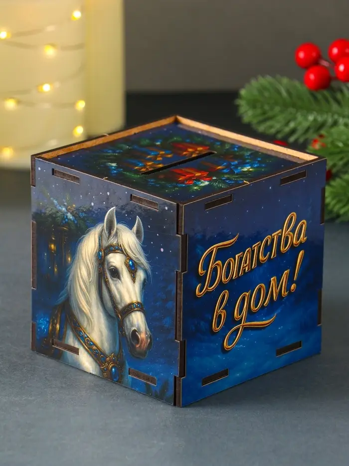 Новогодняя копилка куб "Богатства в дом" 10х10х10 см (набор 7 деталей)