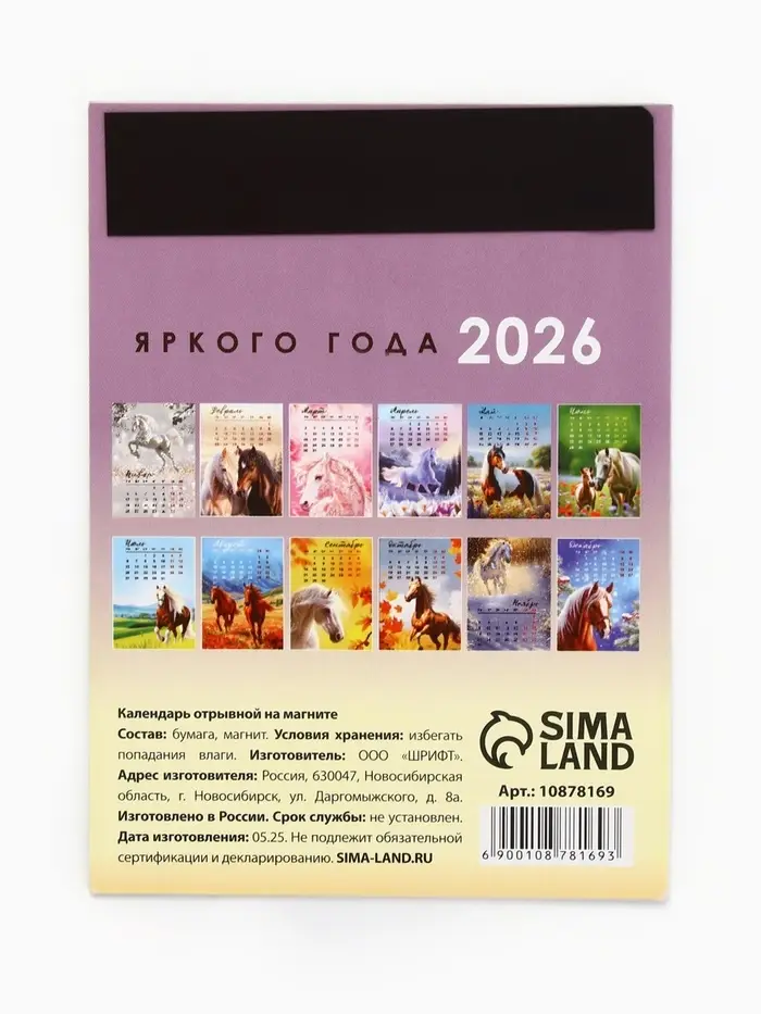 Календарь 2026 отрывной на магните «Лошадка счастье принесёт!» 9.5×13 см
