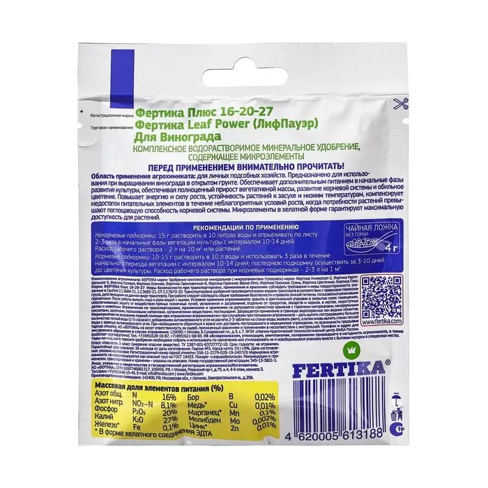 Удобрение минеральное "Фертика" "Leaf Power", для винограда, 50 г