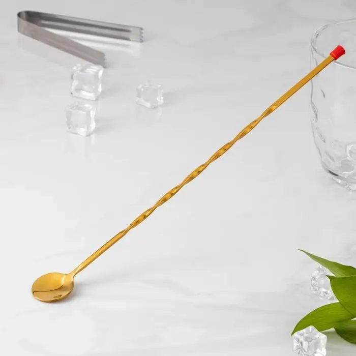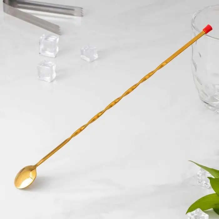 Ложка барная с мадлером из нержавеющей стали, длина 33,5 см, цвет золотой