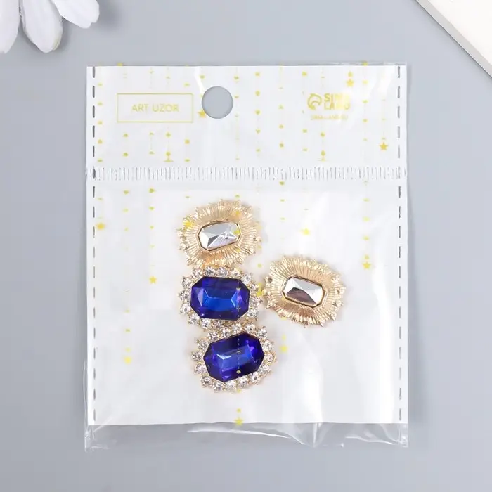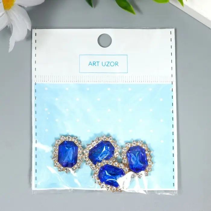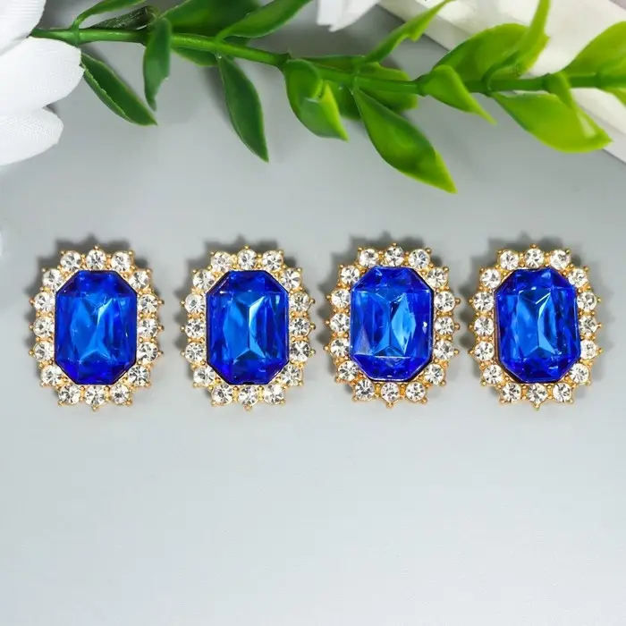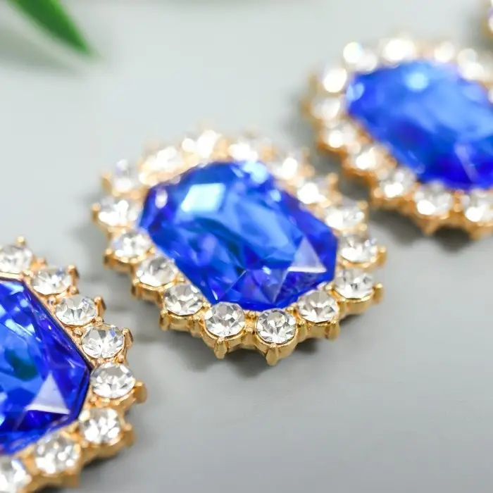 Декор для творчества металл "Медальон восьмиугольный" ярко-синий кристалл стразы 2х1,5 см