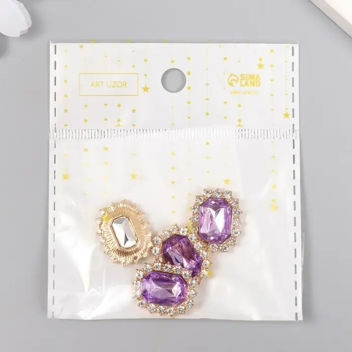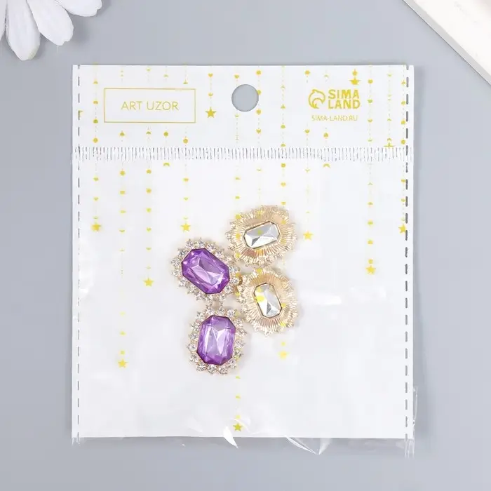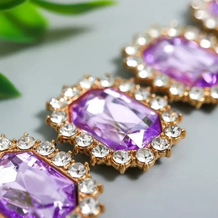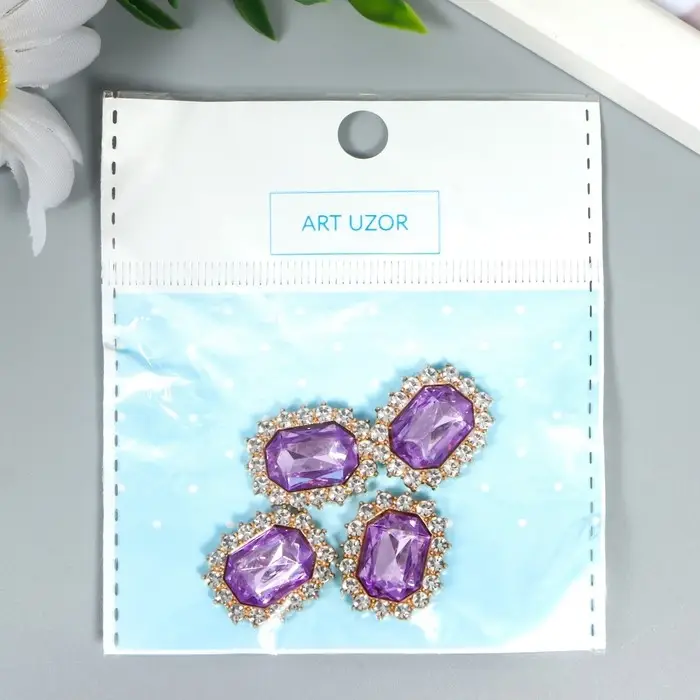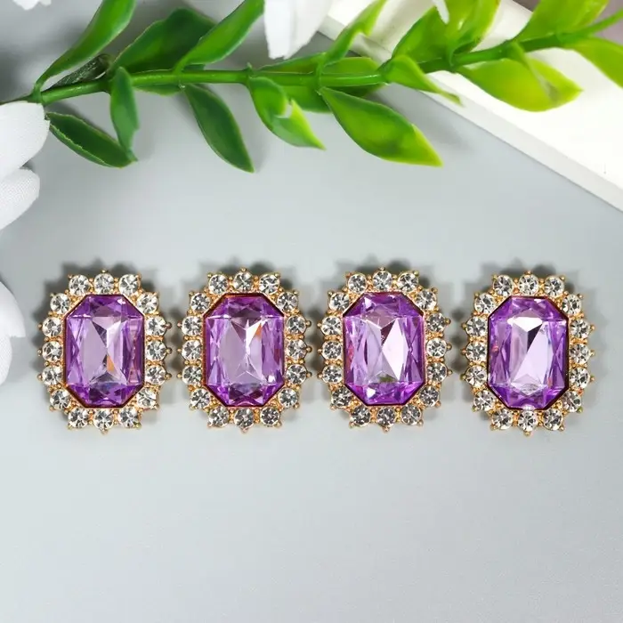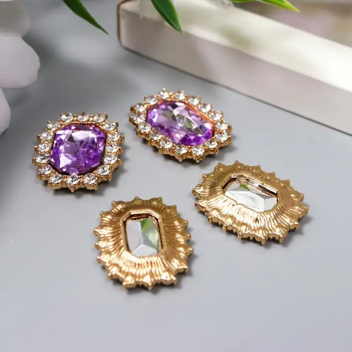 Декор для творчества металл "Медальон восьмиугольный" сиреневый кристалл стразы 2х1,5 см