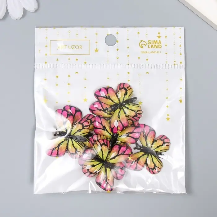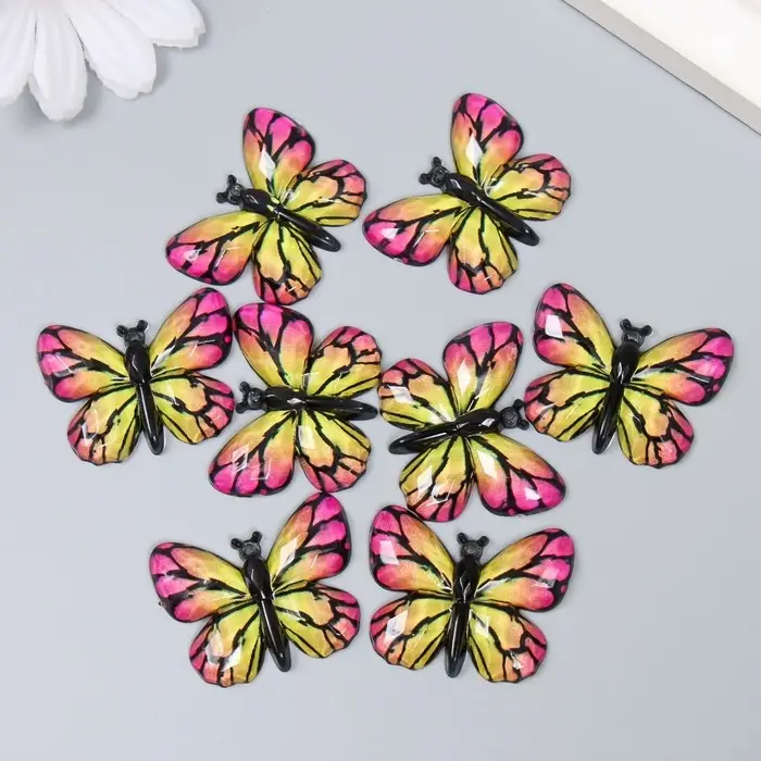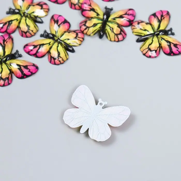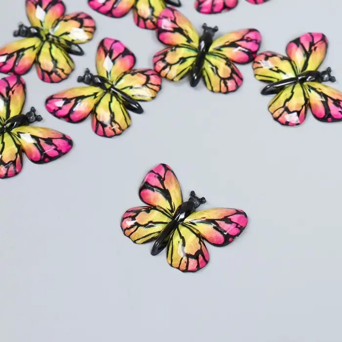 Декор для творчества пластик "Бабочка, жёлто-розовые крылья" 2,5х3,2 см