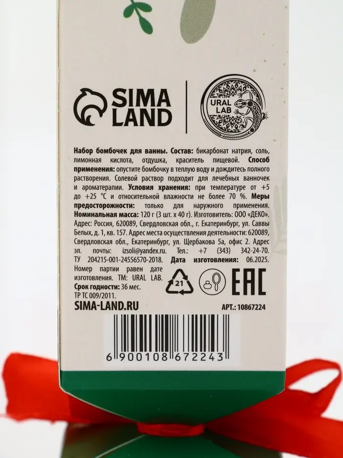 Бомбочки для ванны Magical warm winter, набор 3 шт х 40 г, праздничная ель, URAL LAB