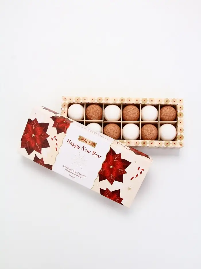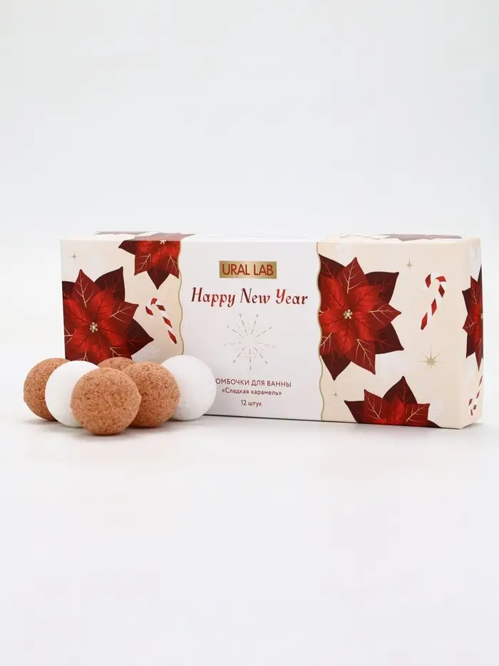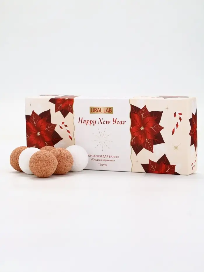 Бомбочки для ванны Happy New Year, аромат сладкая карамель, набор 12 шт х 20 г, URAL LAB