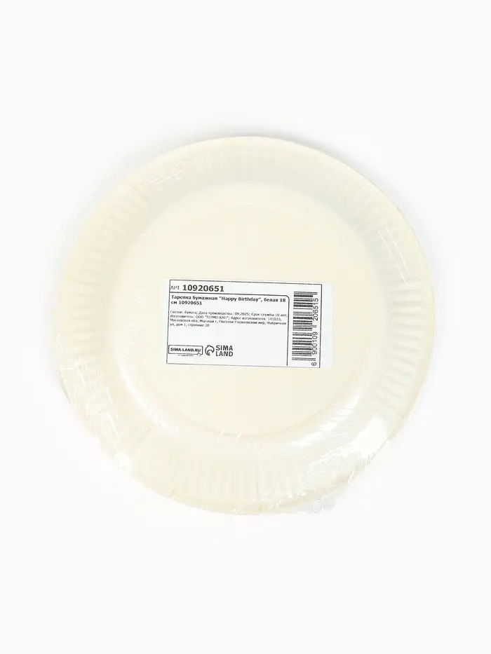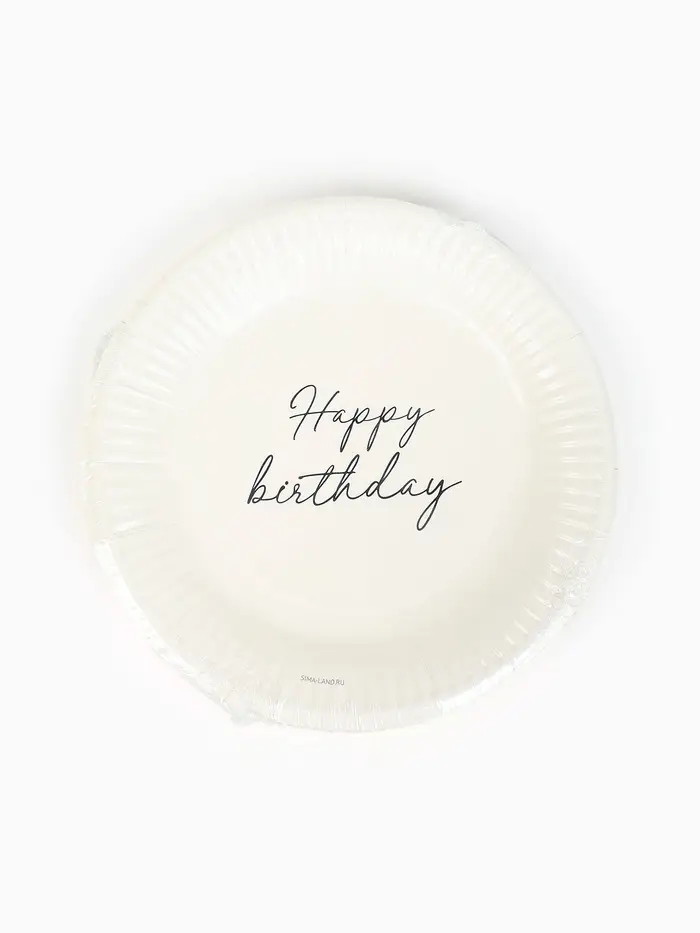 Тарелка одноразовая бумажная «Happy Birthday», белая, 18 см