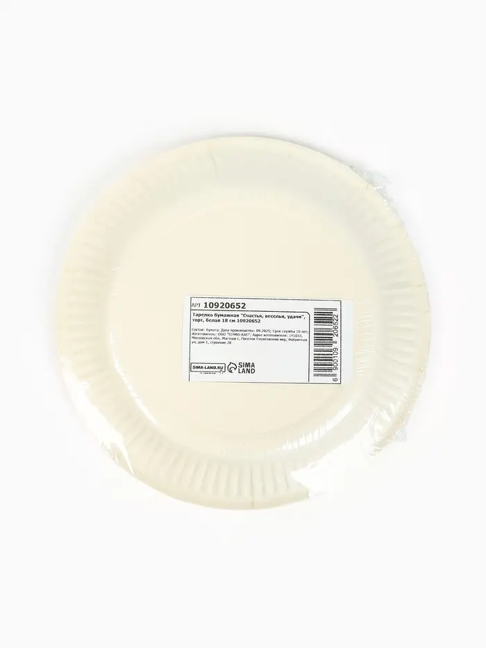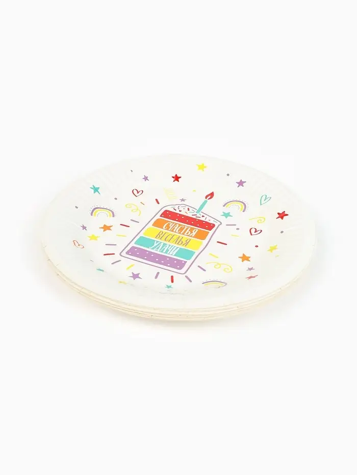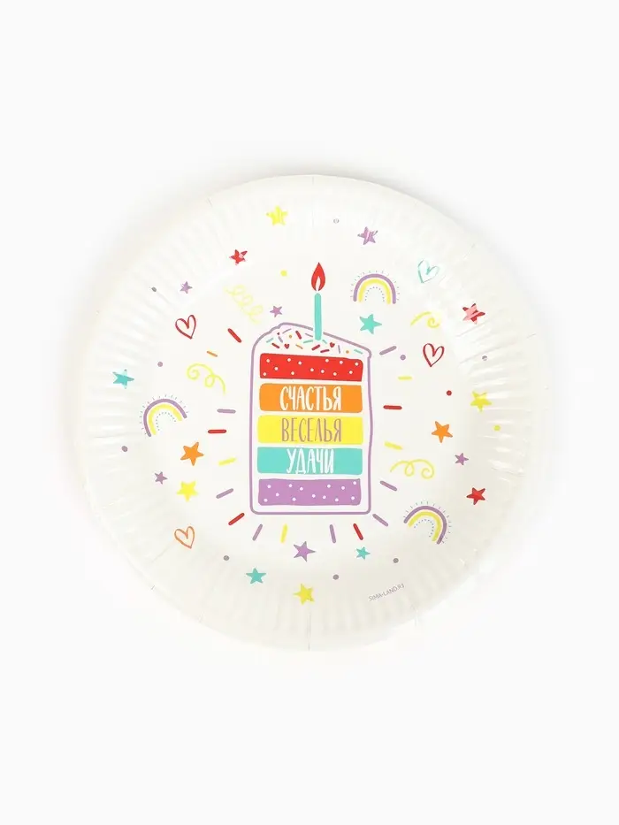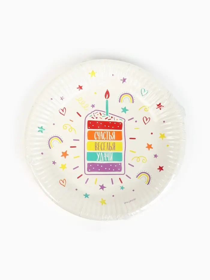 Тарелка одноразовая бумажная «Счастья, веселья, удачи», белая, 18 см