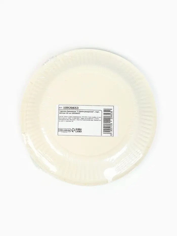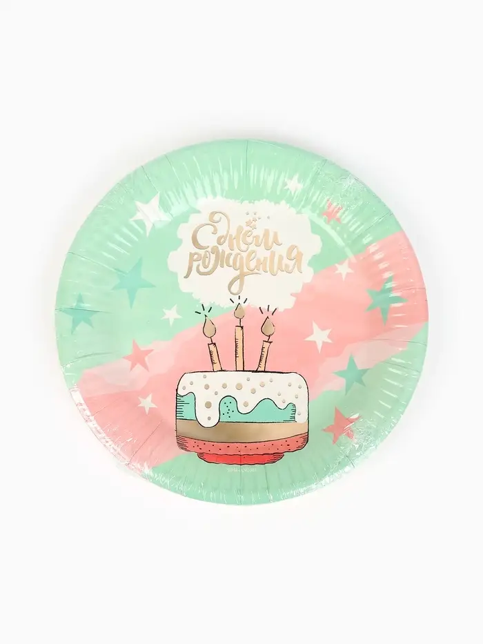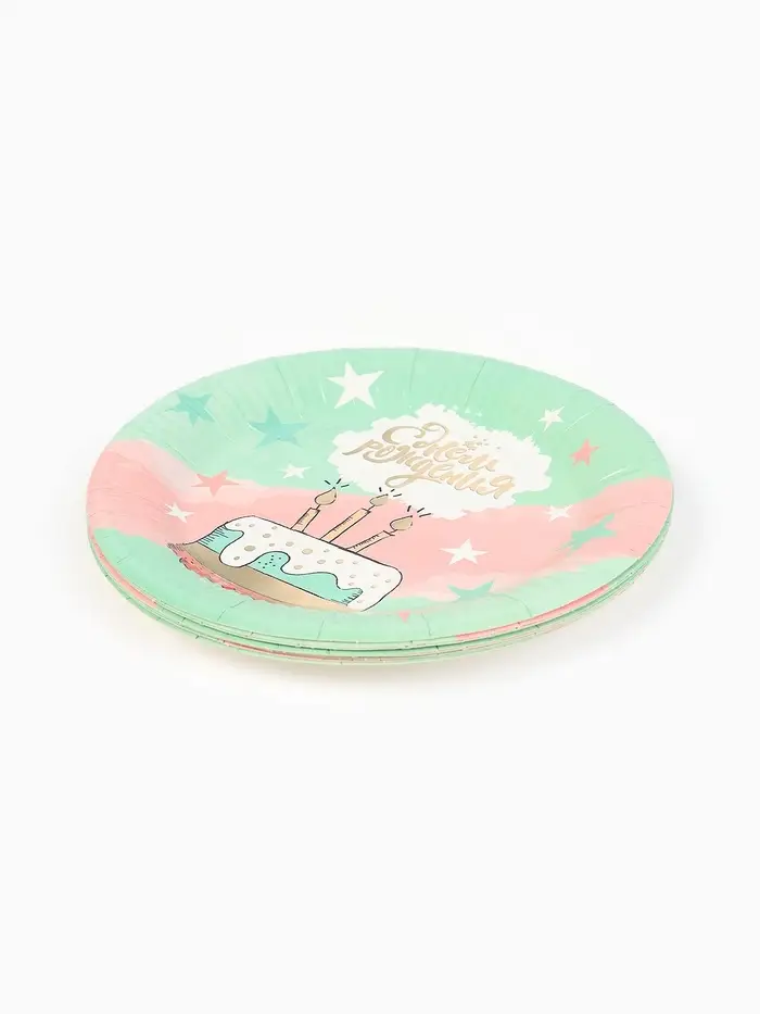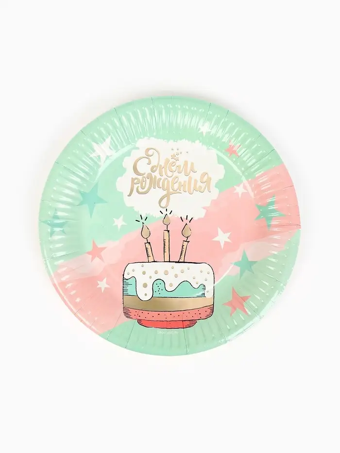 Тарелка одноразовая бумажная «С Днём рождения», мятная, 18 см