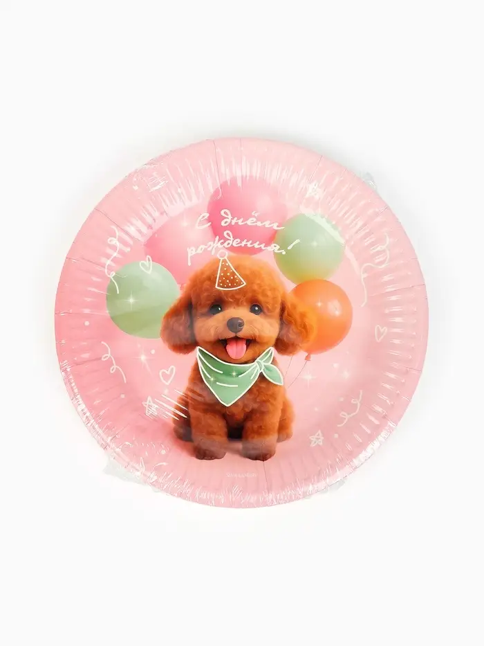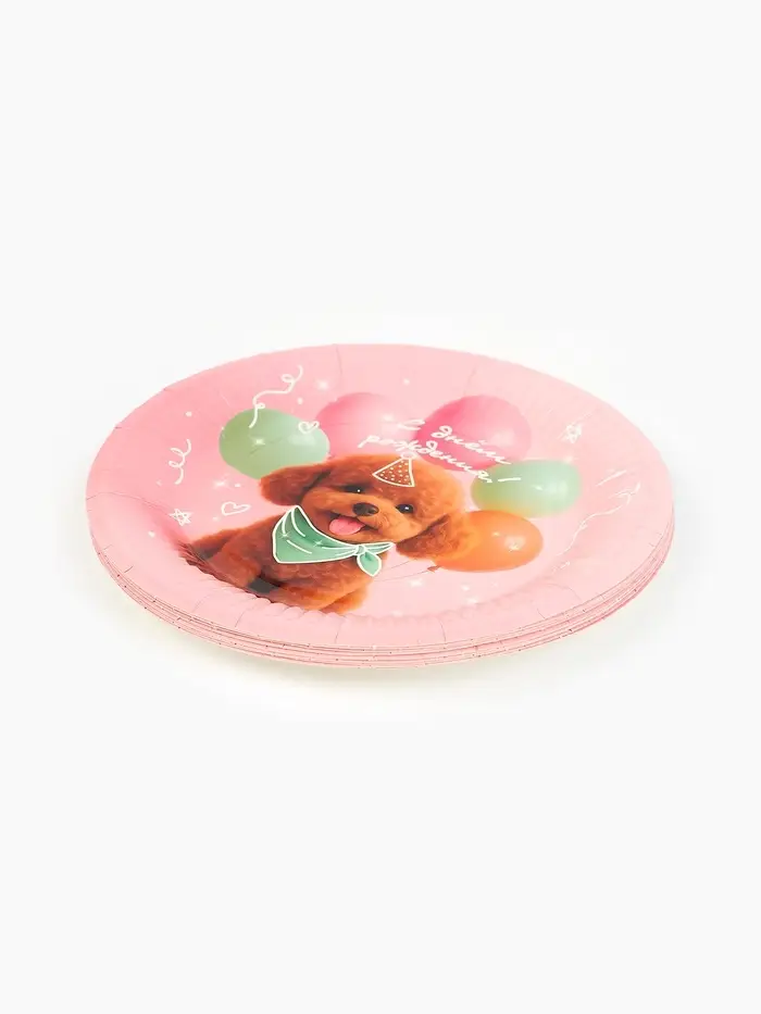 Тарелка одноразовая бумажная «С Днём рождения, собачка», розовая, 18 см