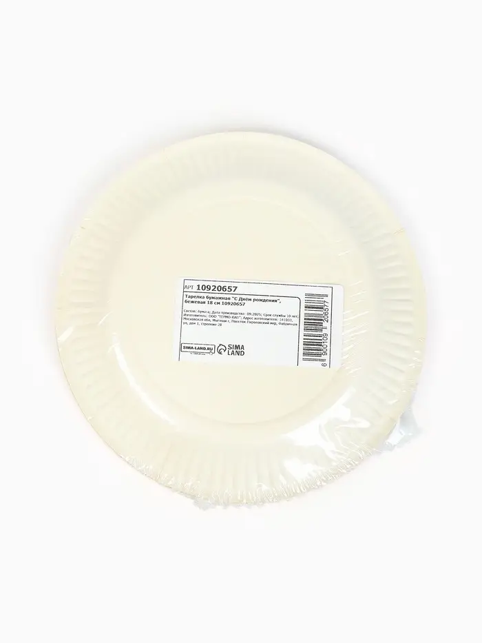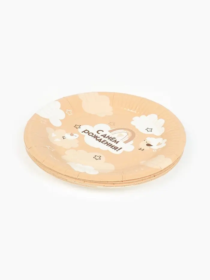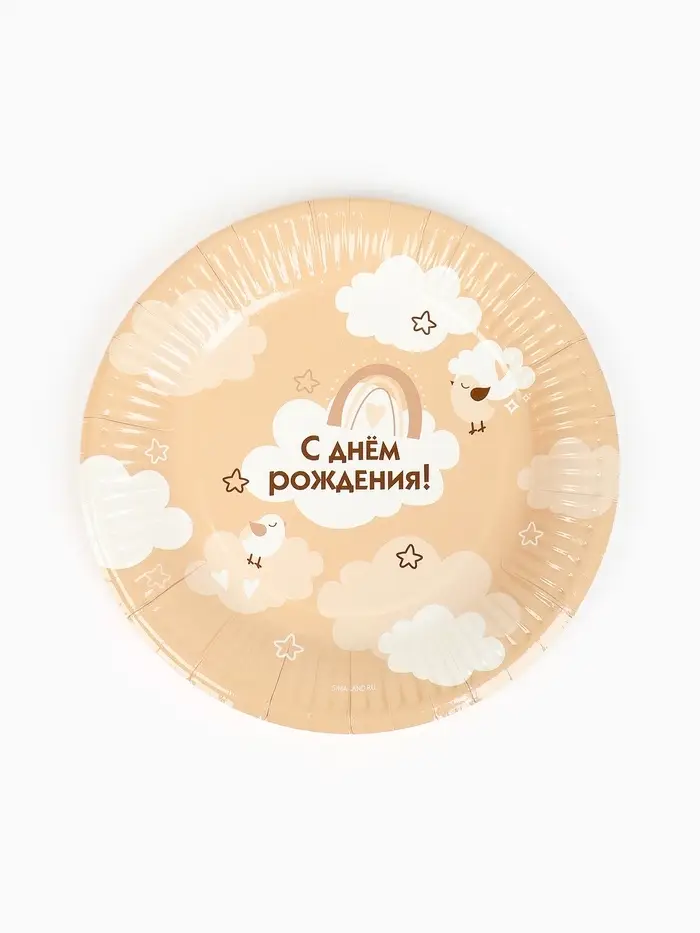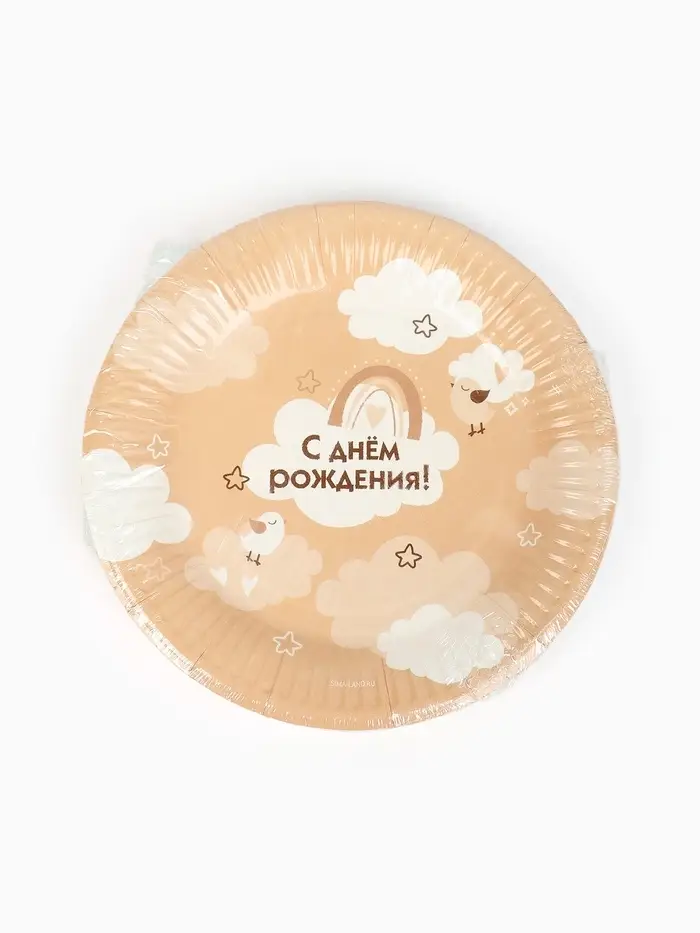 Тарелка одноразовая бумажная «С Днём рождения», бежевая, 18 см