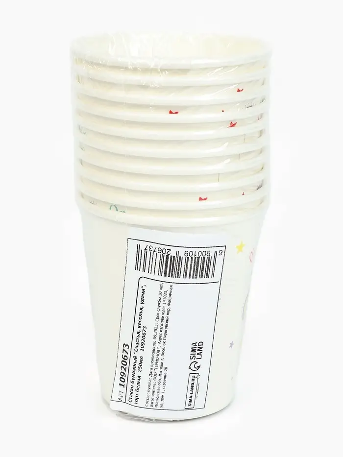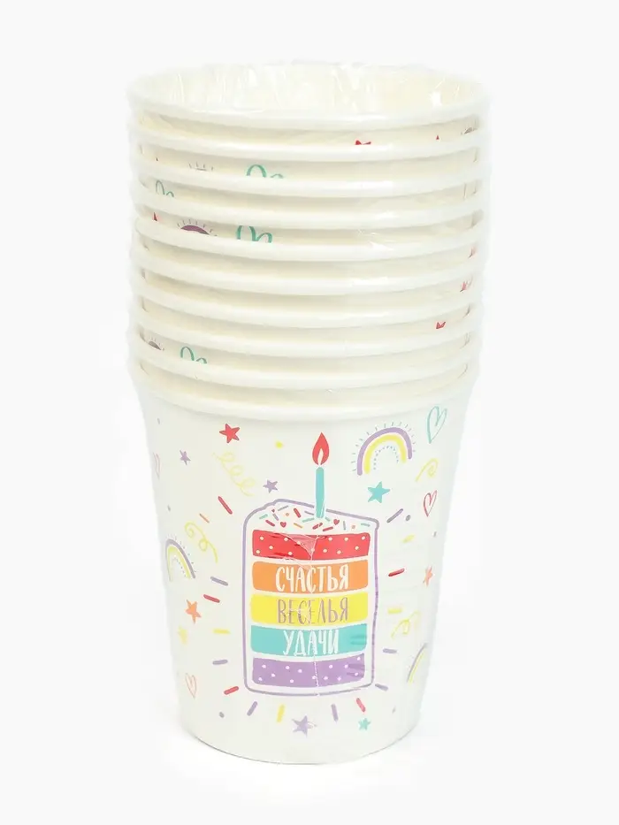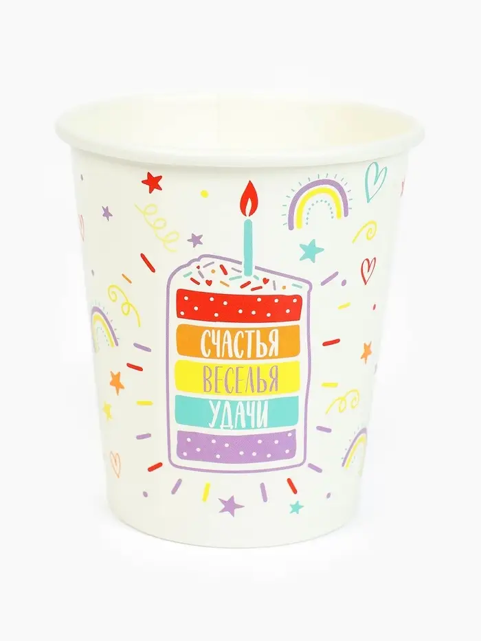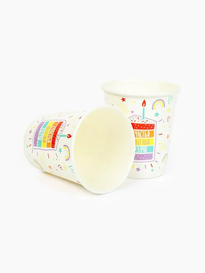 Стакан одноразовый бумажный «Счастья, веселья, удачи», 250 мл