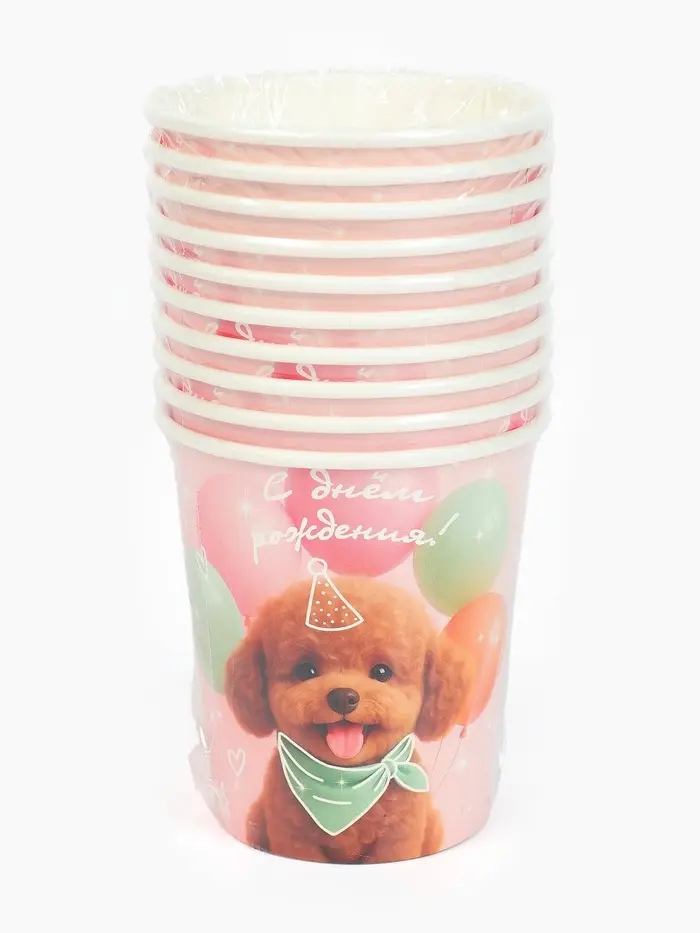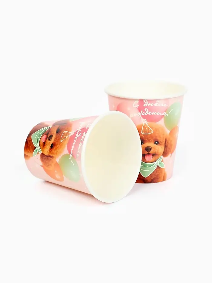 Стакан одноразовый бумажный «С Днём рождения, собачка», розовый, 250 мл