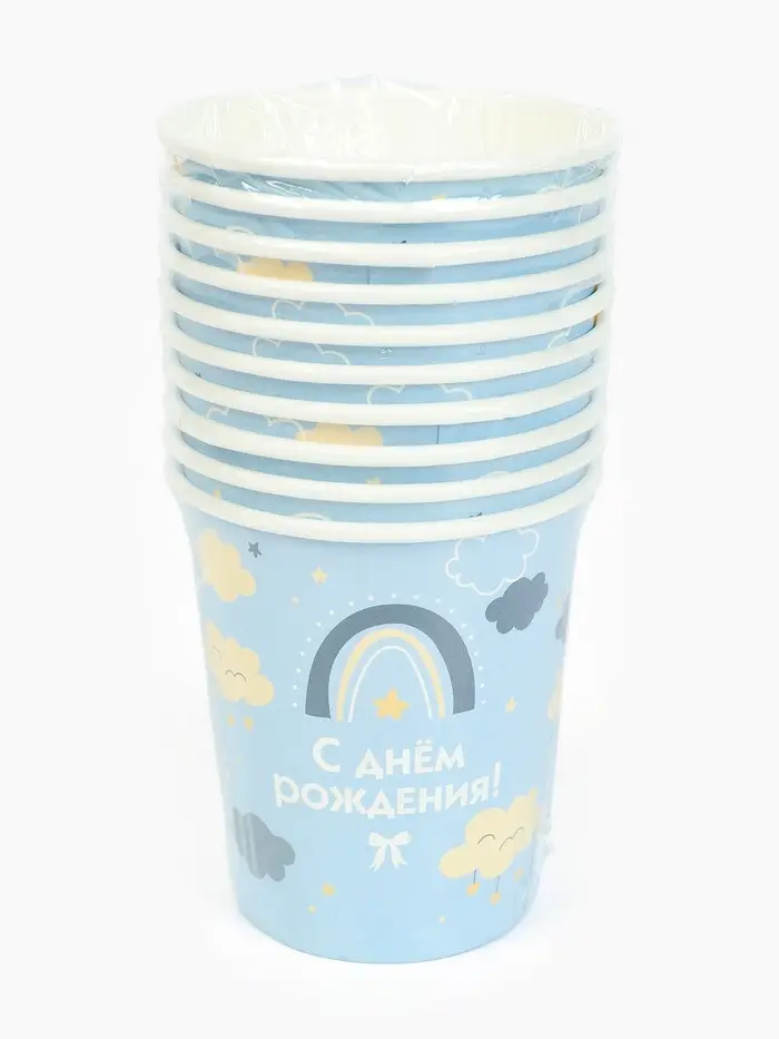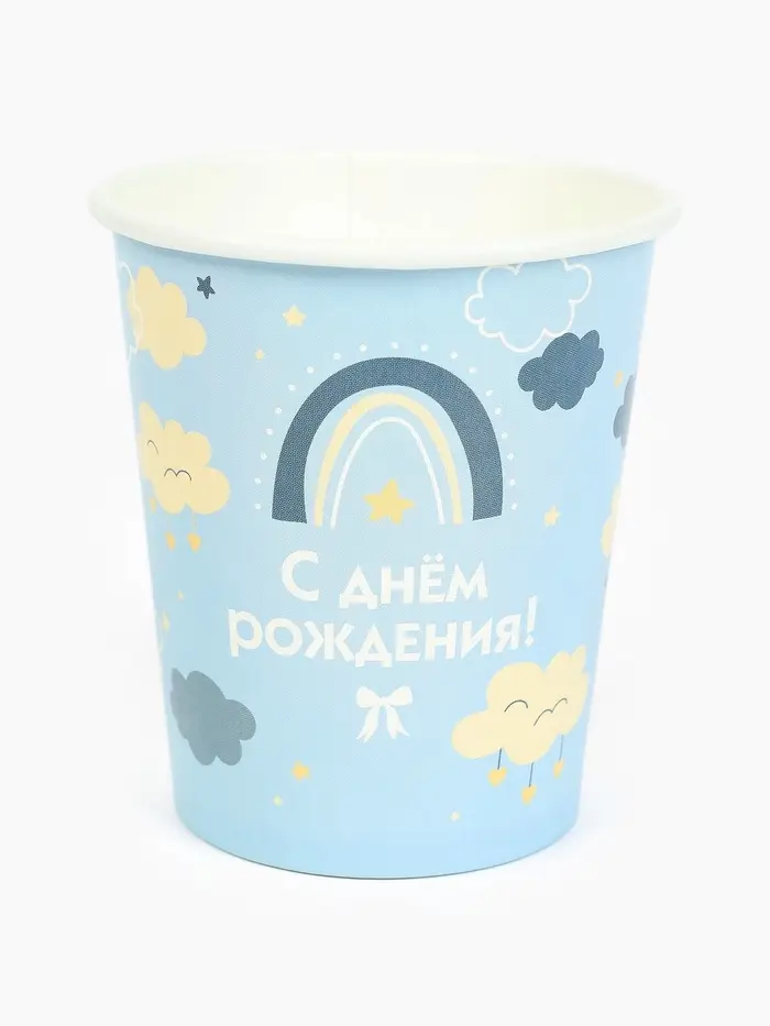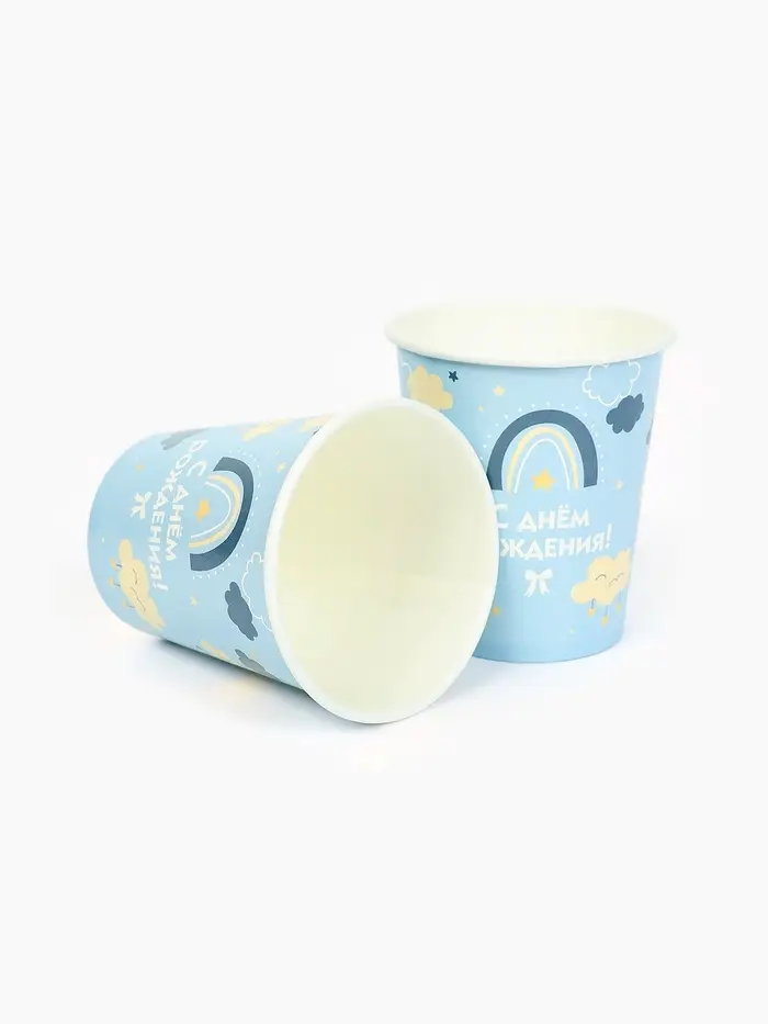 Стакан одноразовый бумажный «С Днём рождения», голубой, 250мл