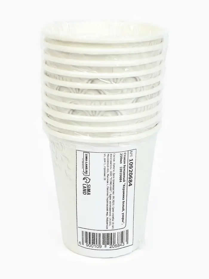 Стакан одноразовый бумажный «Керамика, узоры», 250 мл