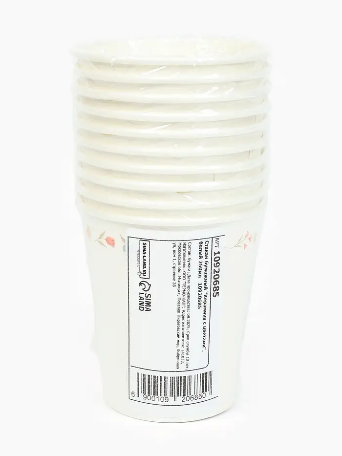 Стакан одноразовый бумажный «Керамика с цветами», белый, 250 мл