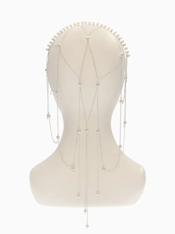 Украшение для волос "Паутина" 44см, цвет белый в серебре