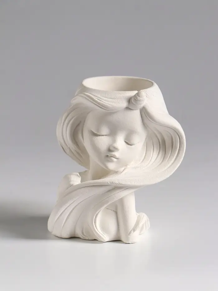Ваза гипс настольная "Девушка с длинными волосами" 6х8х9см
