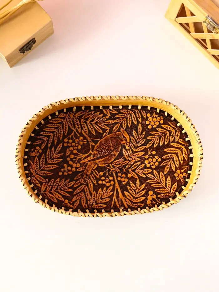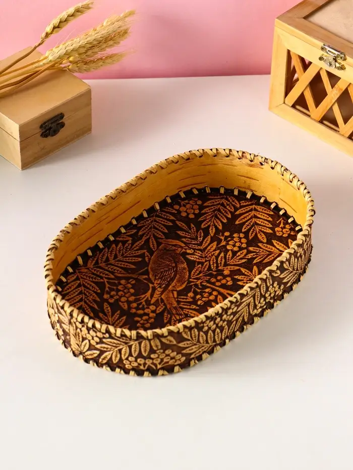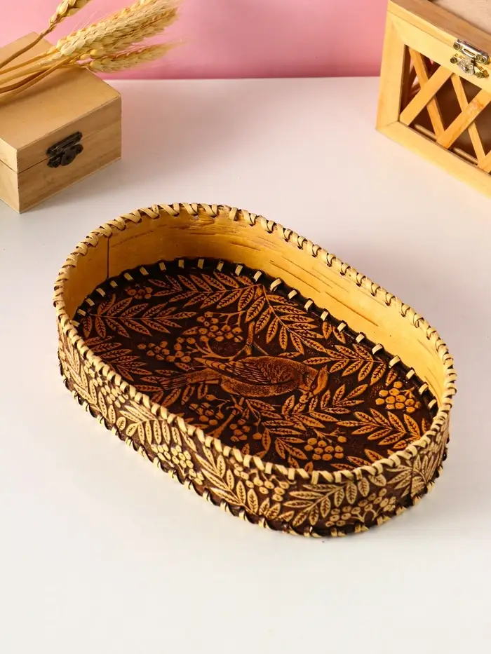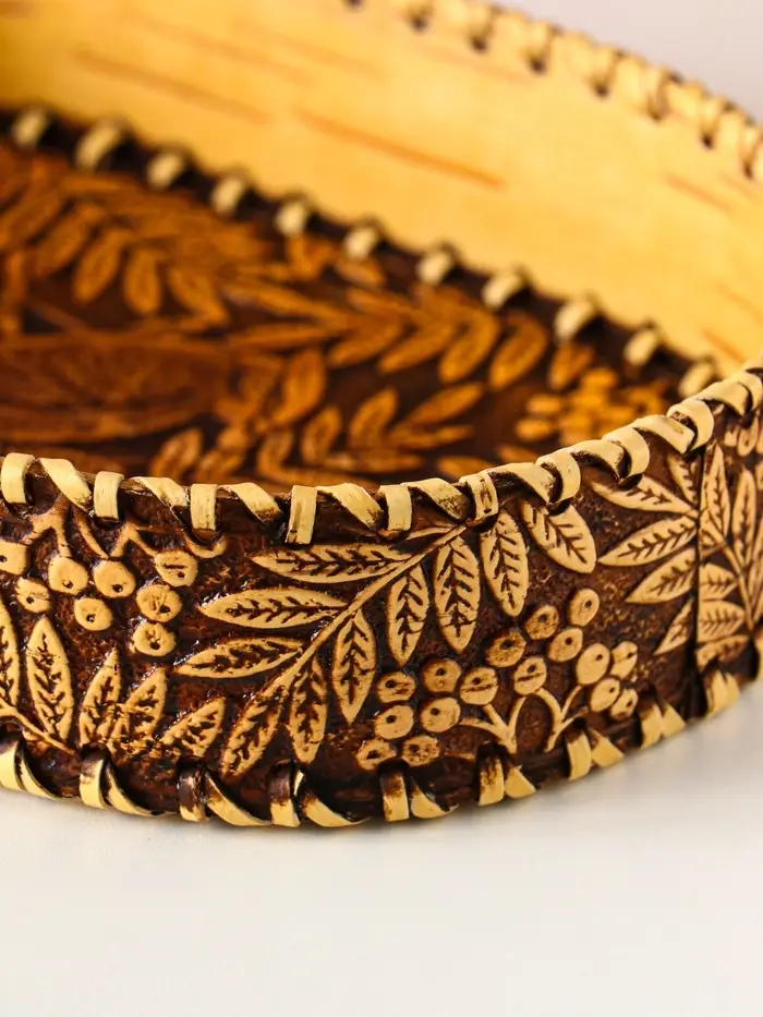 Сухарница традиционная "Птичка в рябине", 23х15х4,5см, Береста