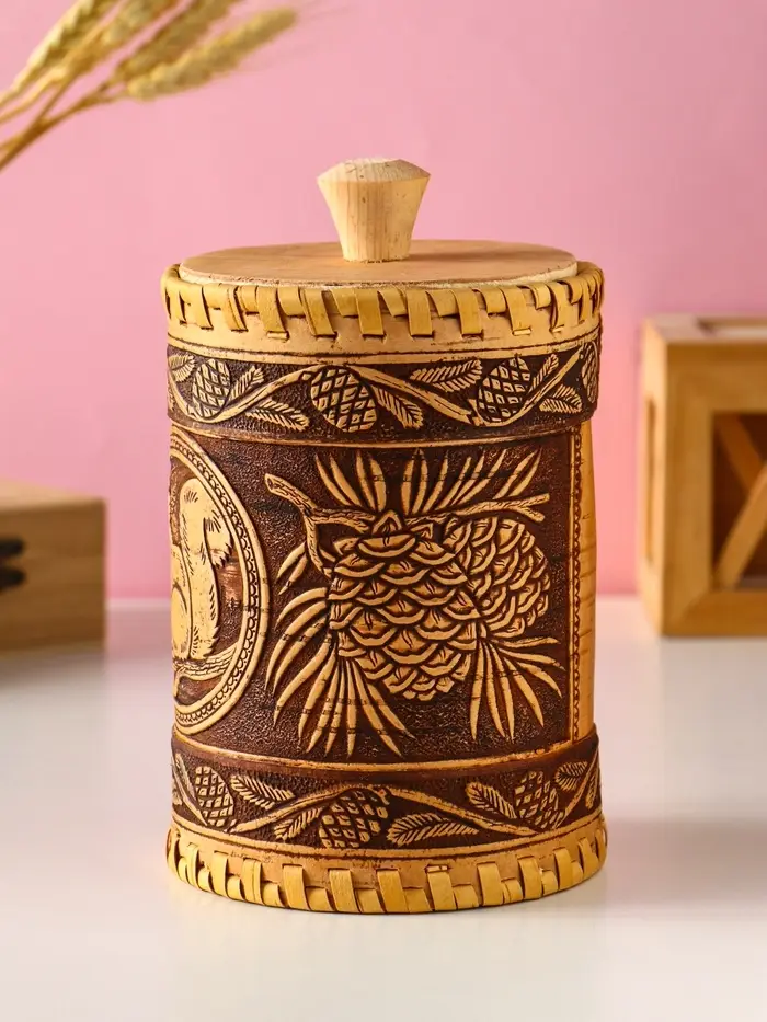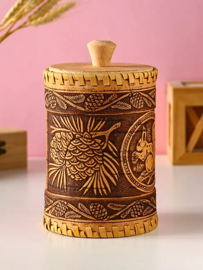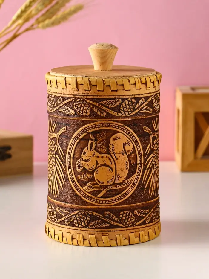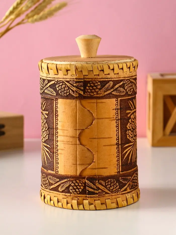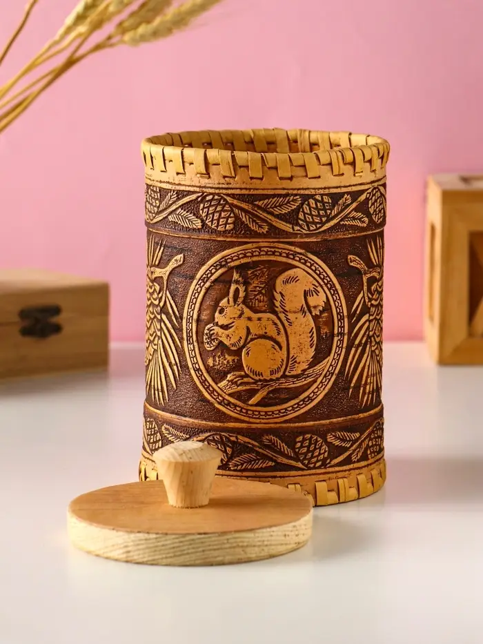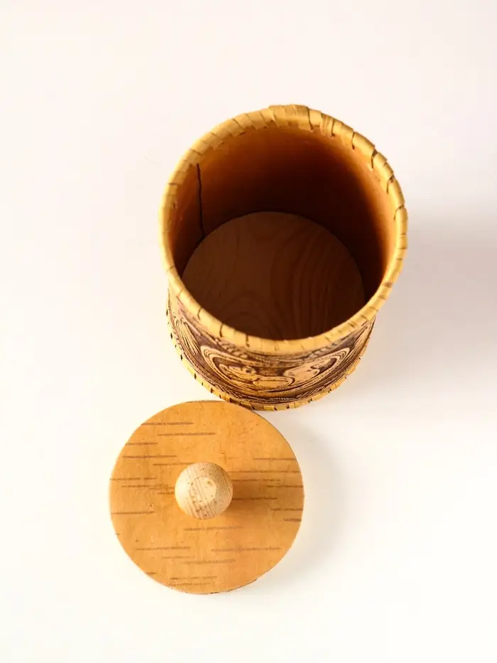 Туес с кантами "Лесная красавица" D10смхH(с хватком)17см, береста