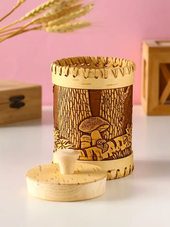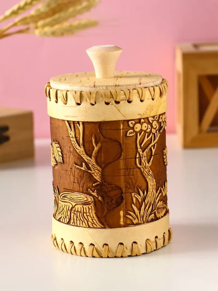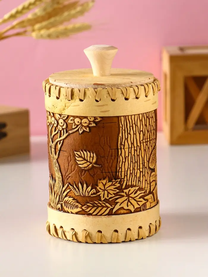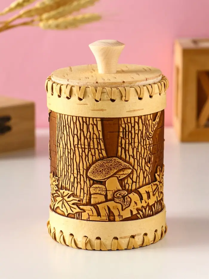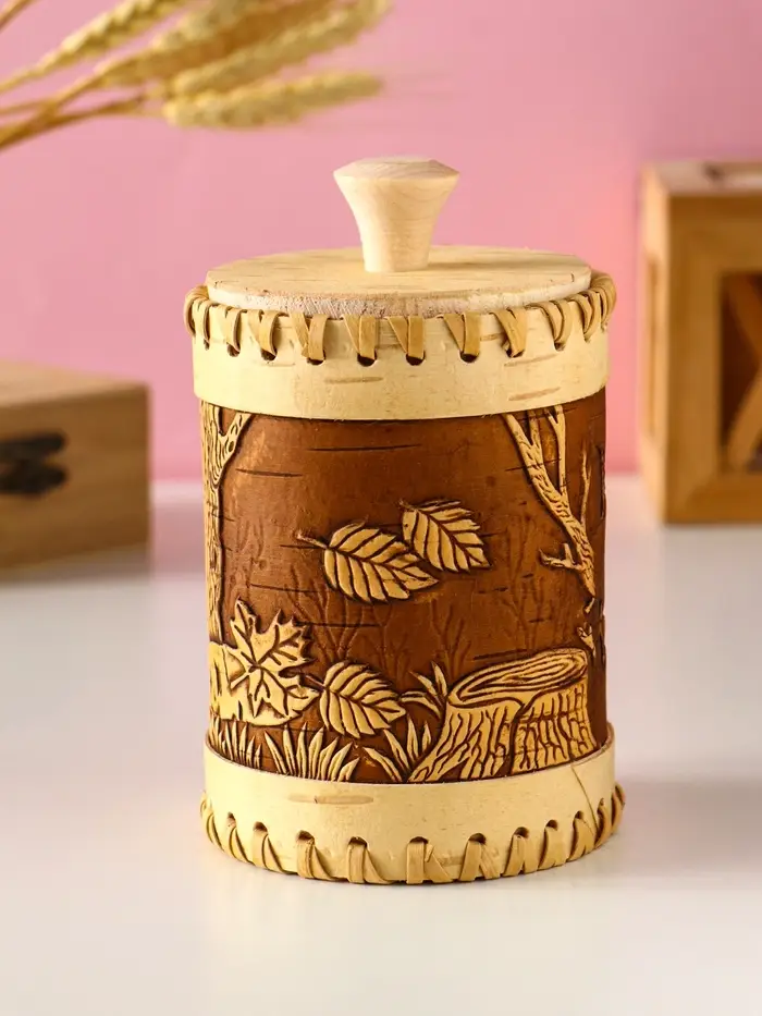 Туес шитый "Осень" , D9 смхH(с хватком)14см, береста