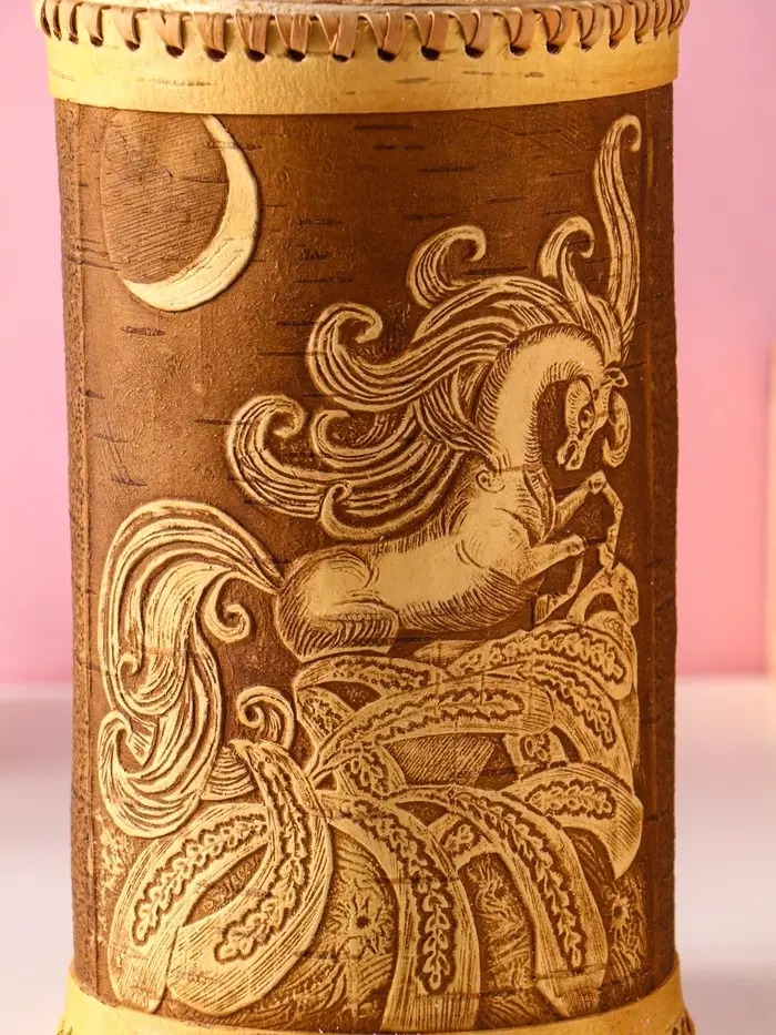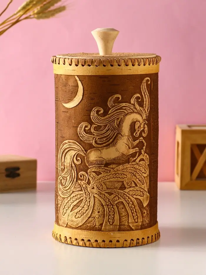Туес большой "Конек-Горбунок", D13 смхH(с хватком)27,5 см, береста