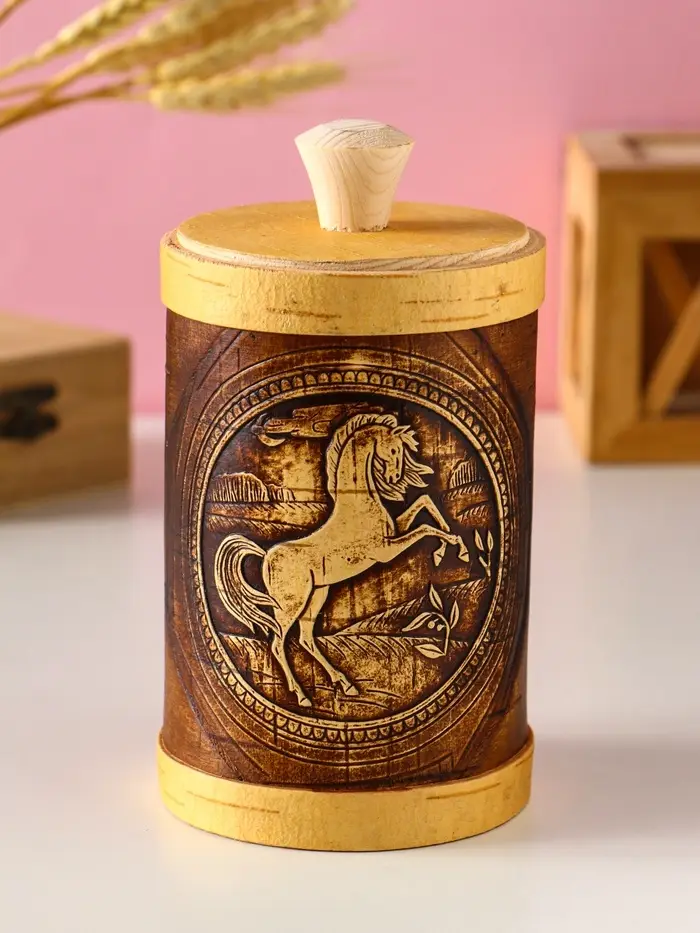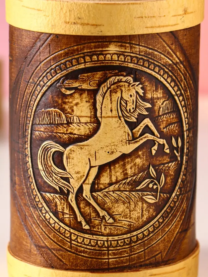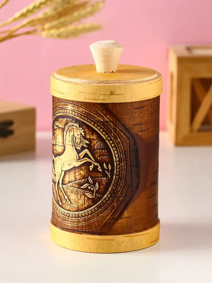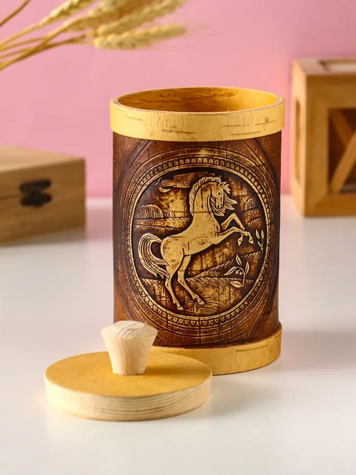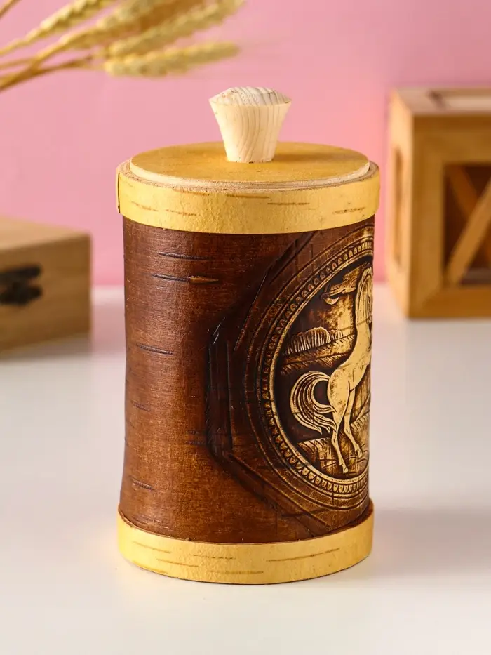 Туес "Конь вороной" d8, высота с хватком 15,5см, береста