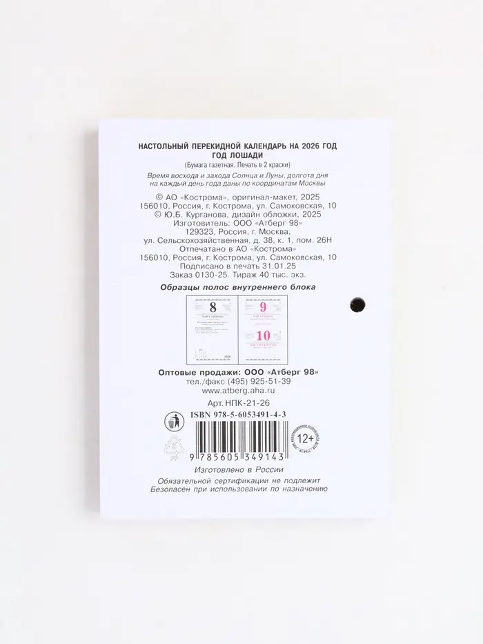 Календарь 2026 перекидной настольный «Природа», сменный блок, 160 листов