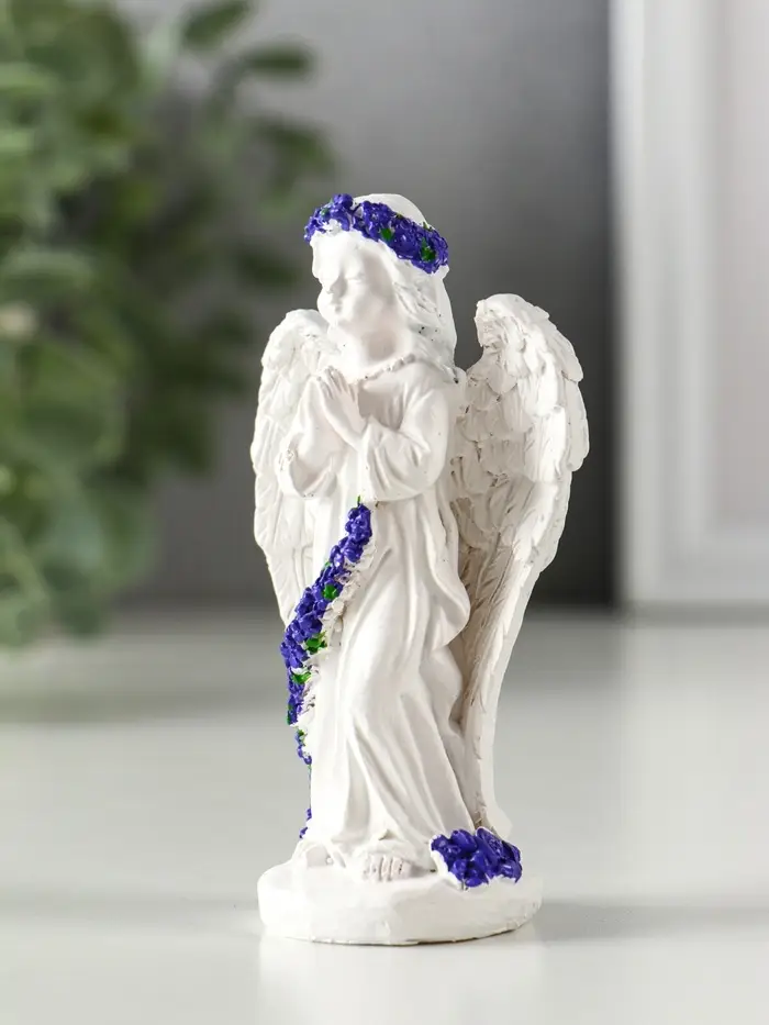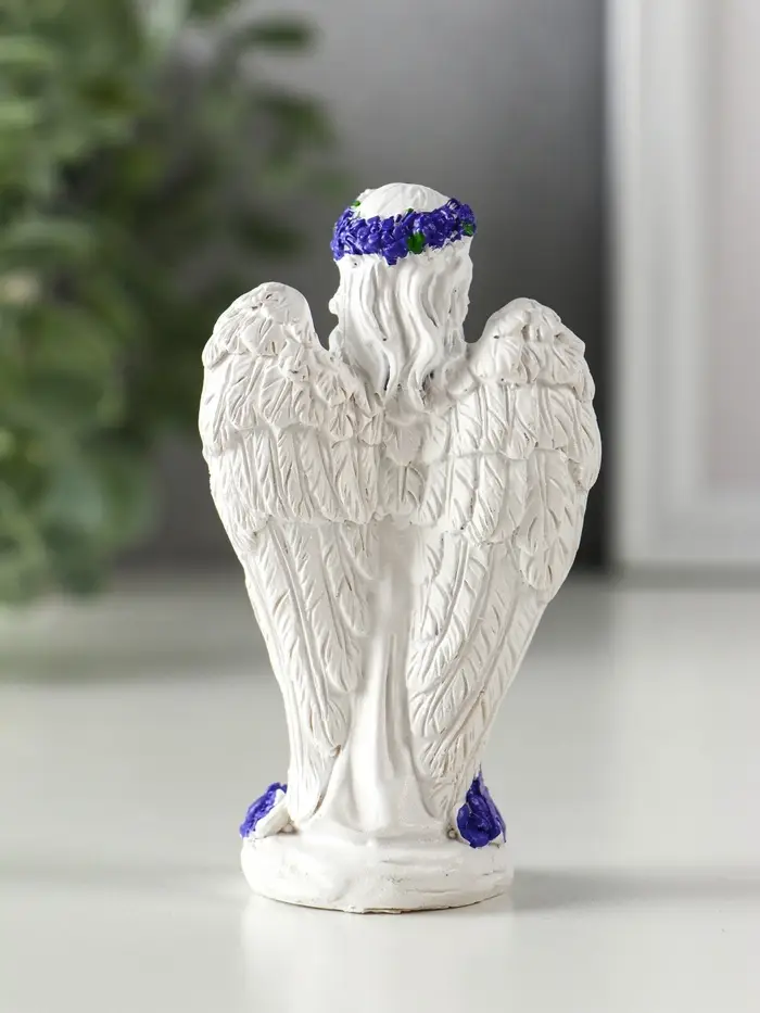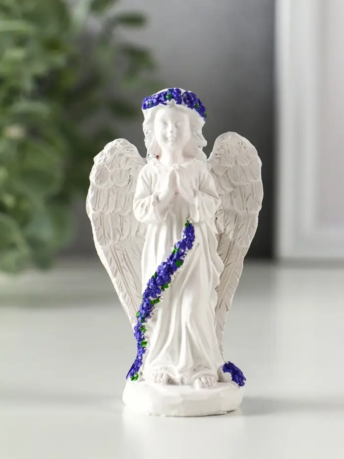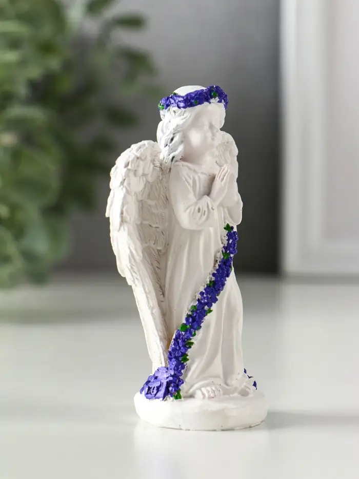 Сувенир полистоун "Девочка-ангел платье с лавандой - молитва" бело-фиолетовый 5,5х3,5х9,3 см 10902