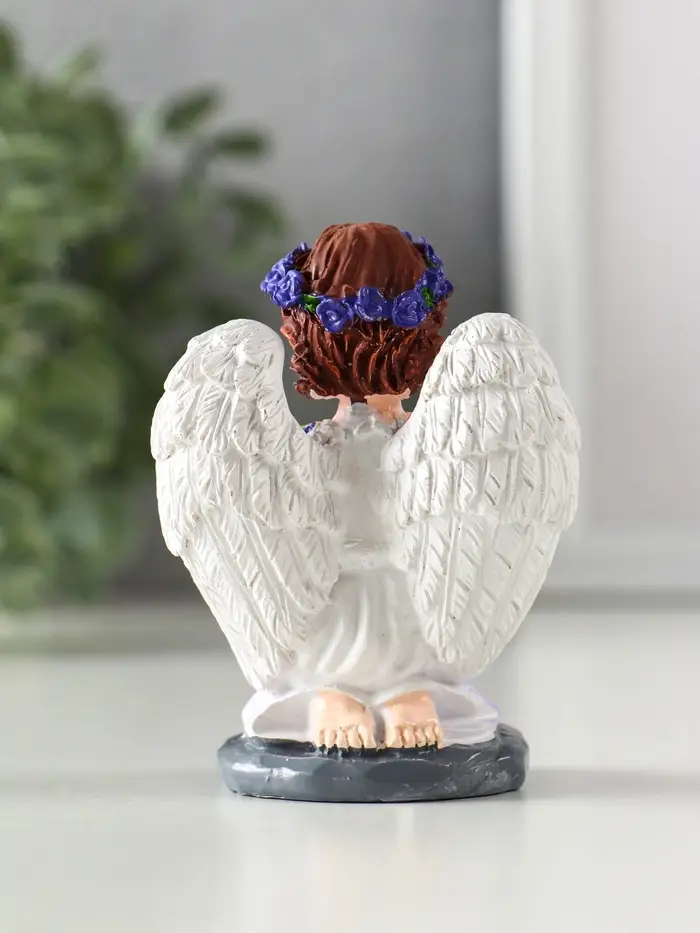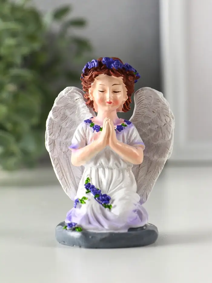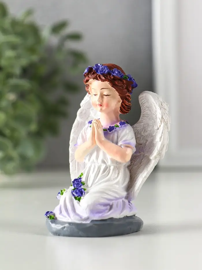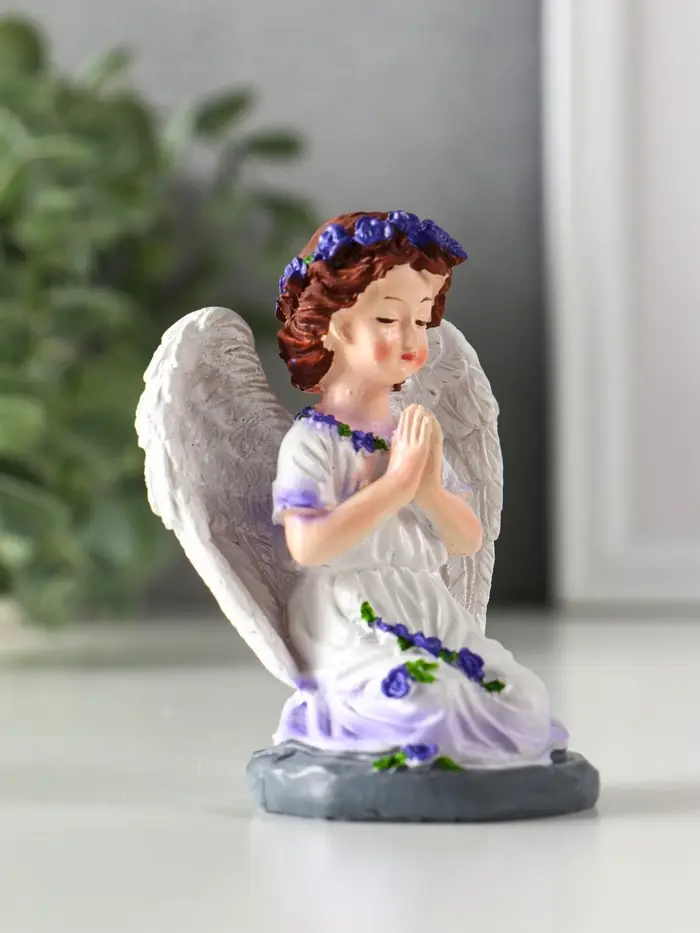 Сувенир полистоун "Девочка-ангел в платье с лавандой - молитва" фиолет 6,7х5х9 см